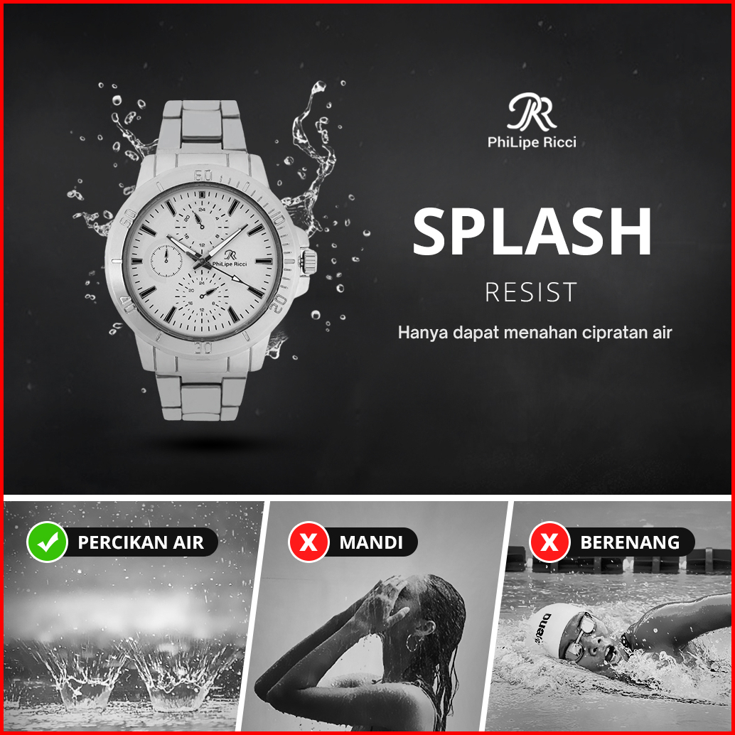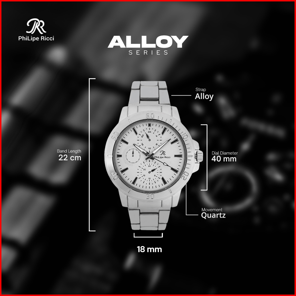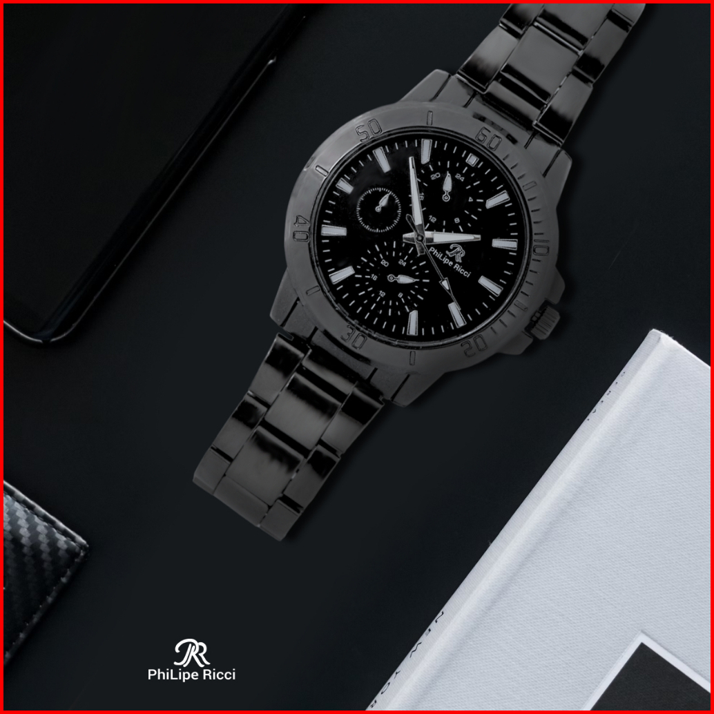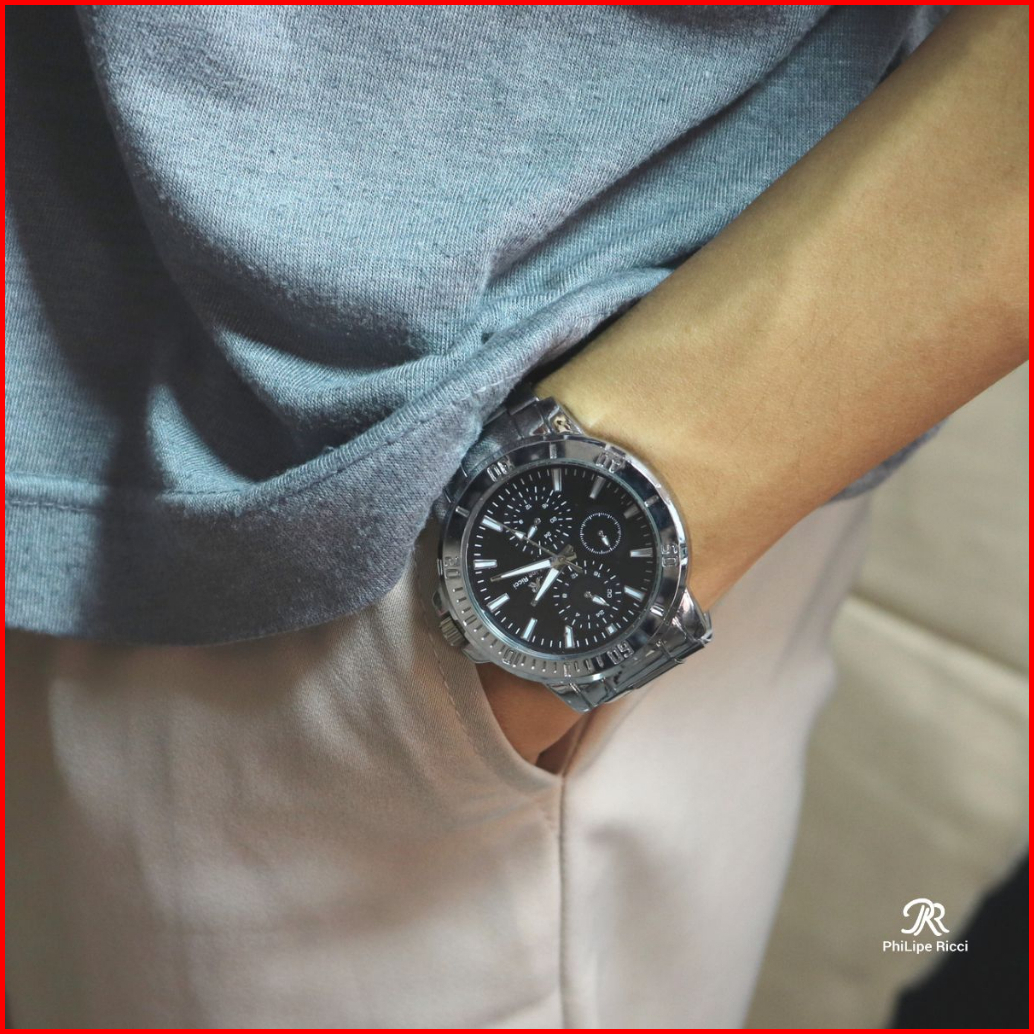 Philipe Ricci Jam Tangan Pria Rantai Analog Diameter Bulat Ukuran Sedang Strap Tali Besi Gaya Modern Formal 5024 Free Bo