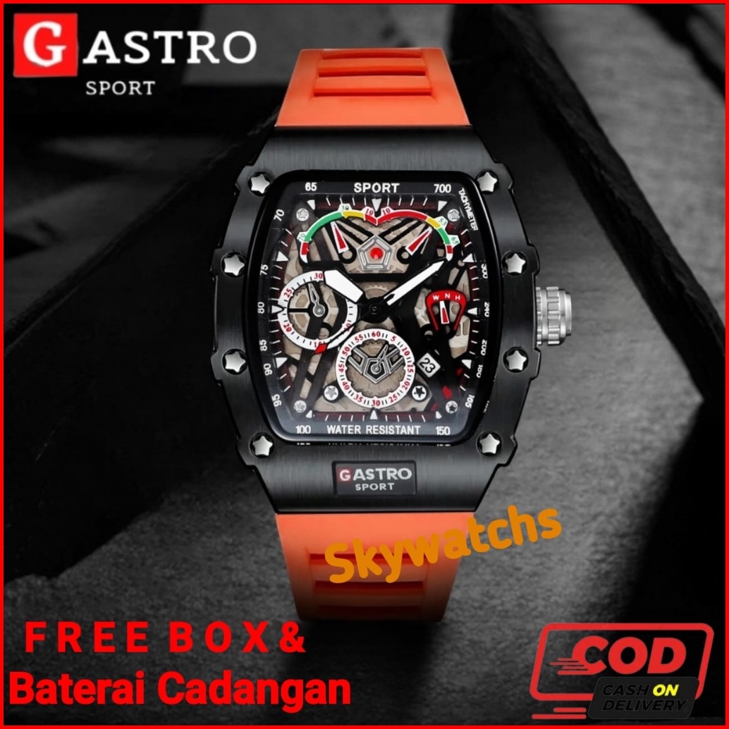 Sky Jam Tangan Pria Gastro Gs-126 Analog Chrono Tanggal Aktif Strap Rubber Anti Air Original Jam Tangan Olahraga Gastro
