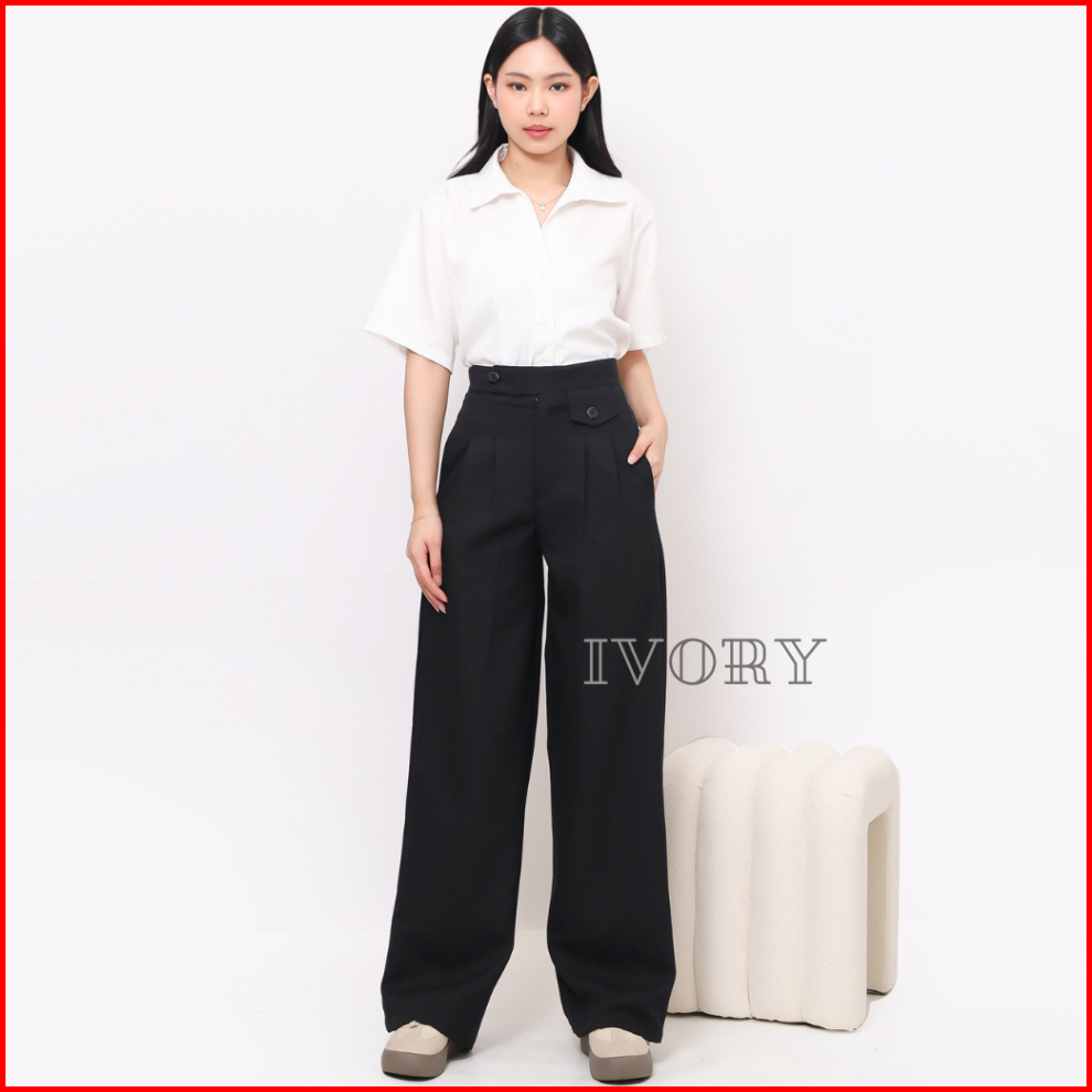 Ivory - Celana Kulot Wanita Panjang Loose Pants Highwaist Celana Wanita Kerja Kantor Formal Kekinian Korean Style