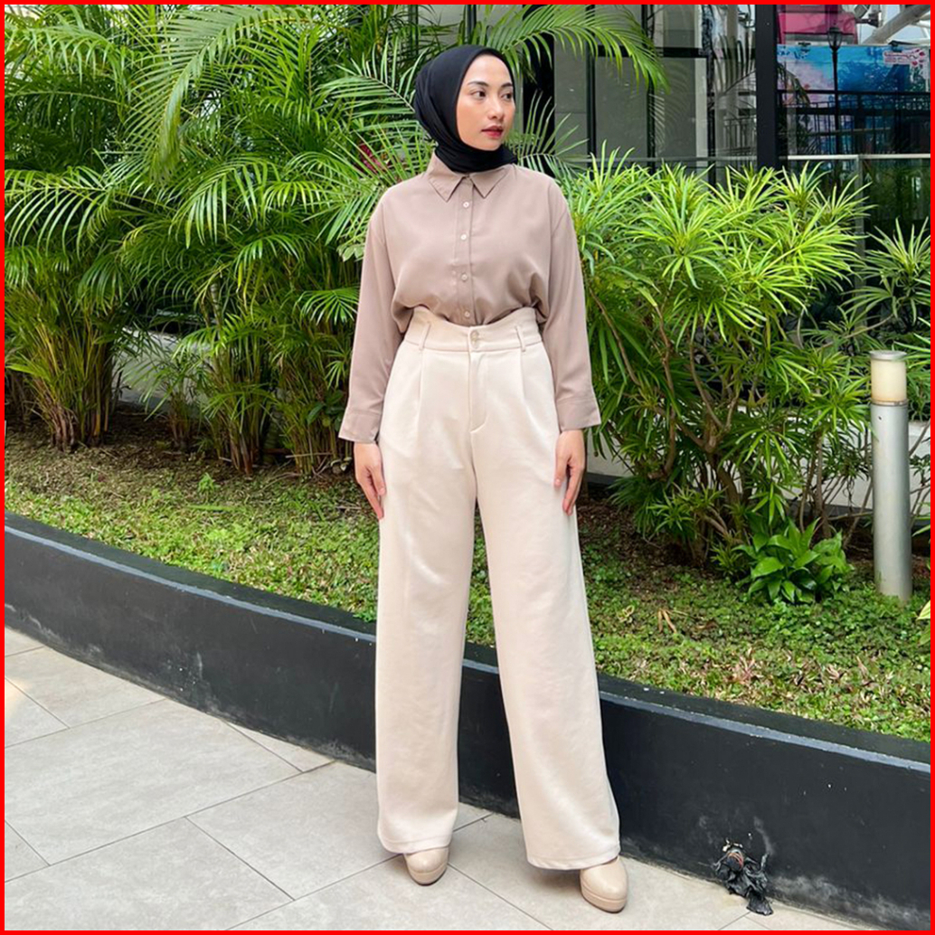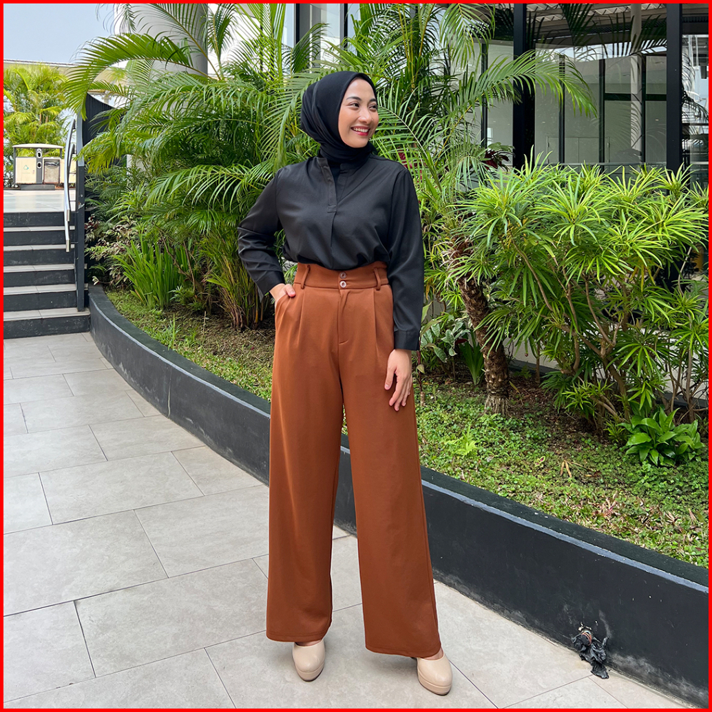 Alice Hw Kulot Basic Premium C1010181 By Sonia Celana Kulot Kancing Highwaist Wanita Office Long Pants Casual