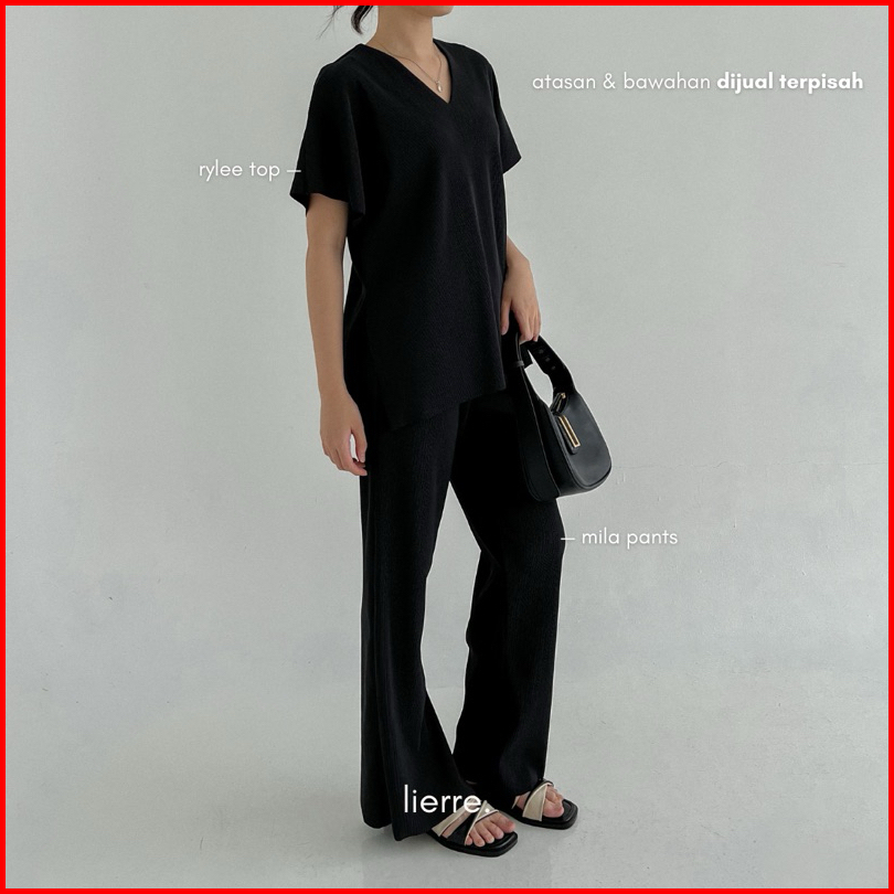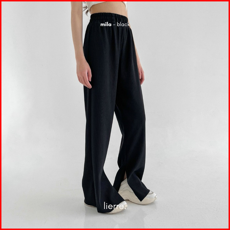 Lierre. Mila Pants - Mini Pleats Highwaist Slit Culotte Pants Celana Kulot Wanita