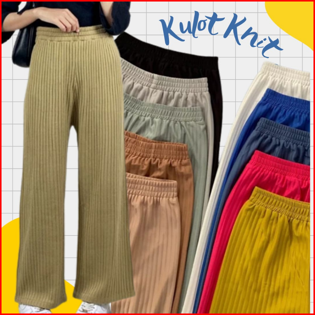 Celana Kulot Knit Wanita Tebal - Celana Kulot Highwaist Panjang - Kulot Knit Hornet Berkualitas