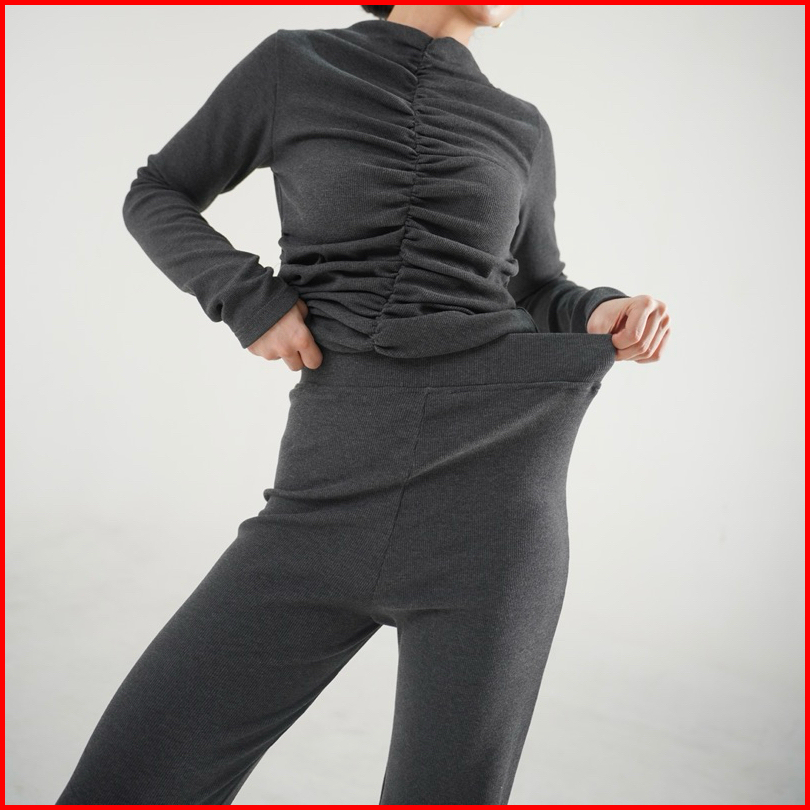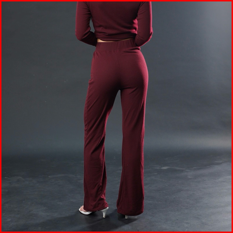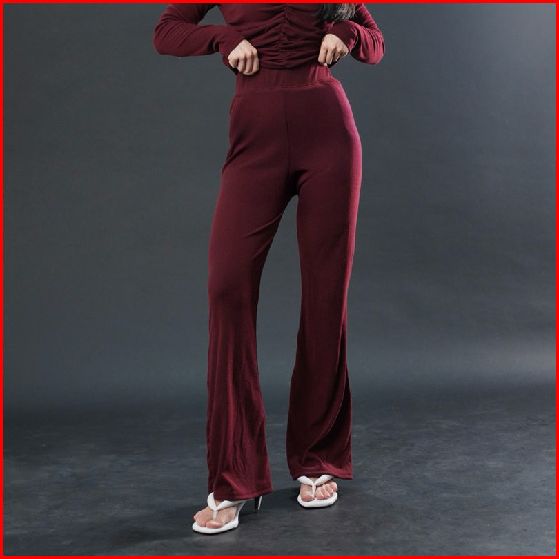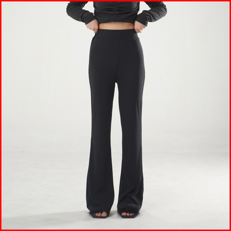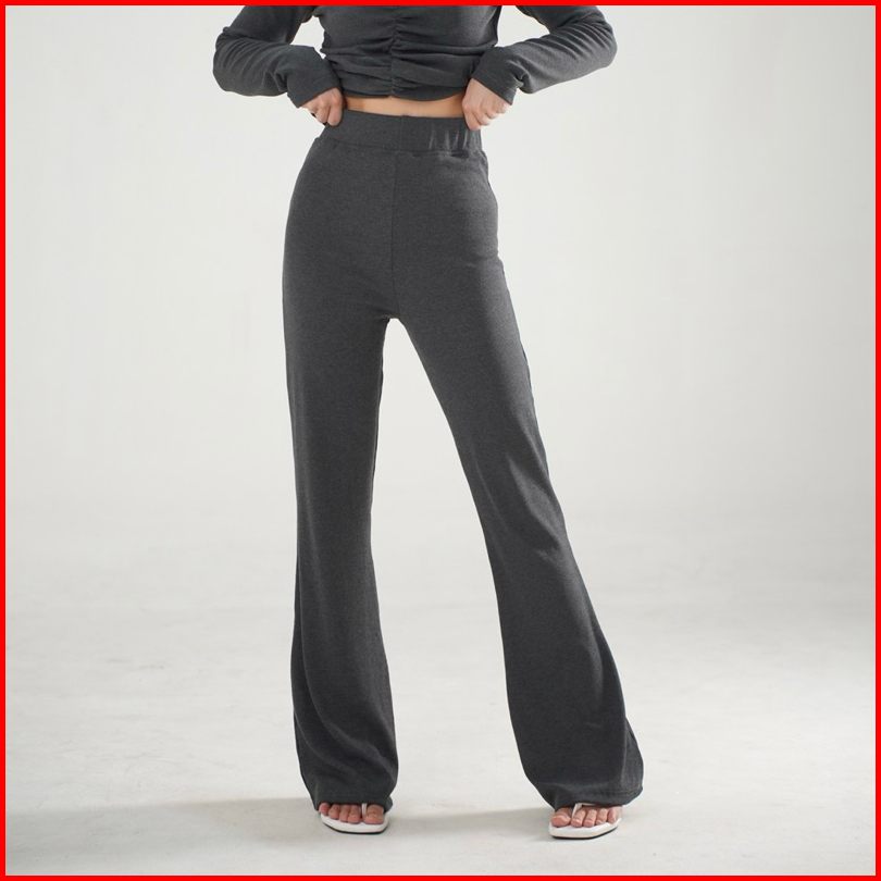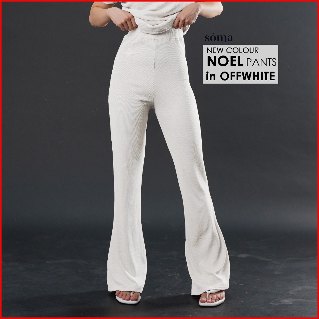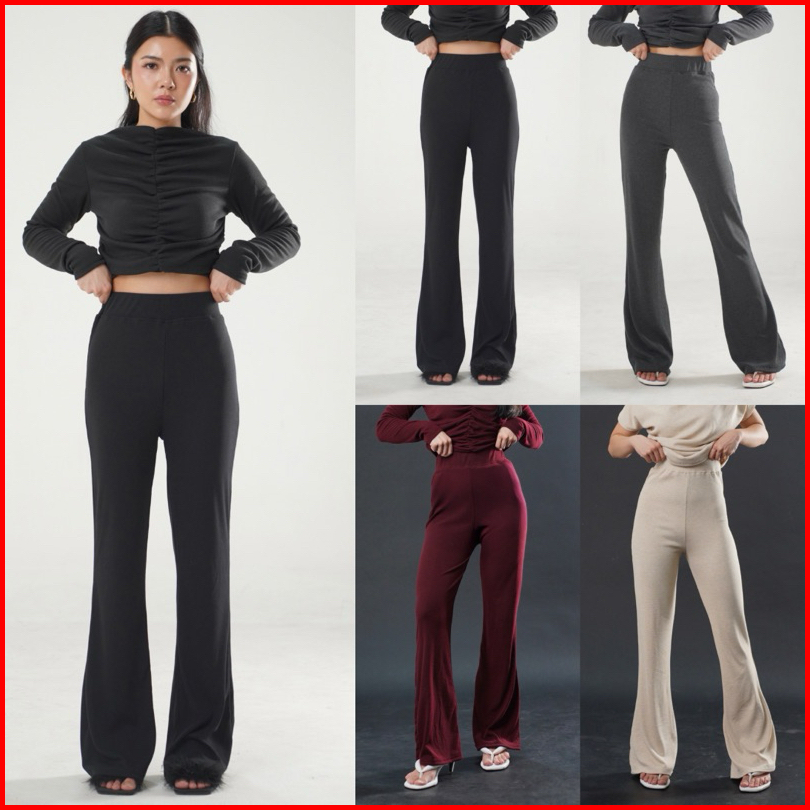 Noel Pants - Celana Panjang Knit Wanita Long Cullote Pants Highwaist Loose Flare Cutbray Pants Basic Rib Knit Korean Lon