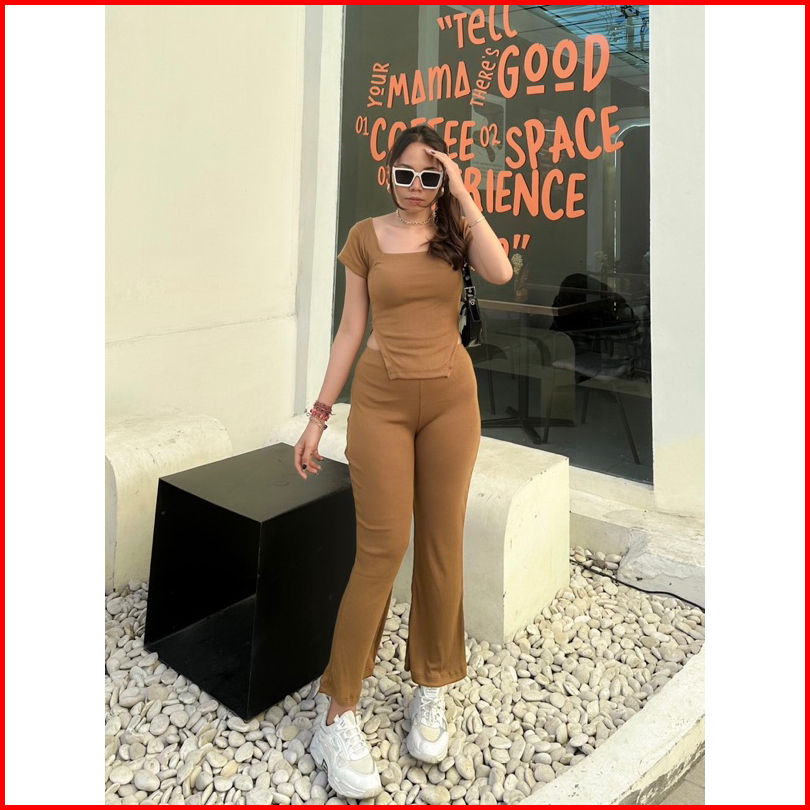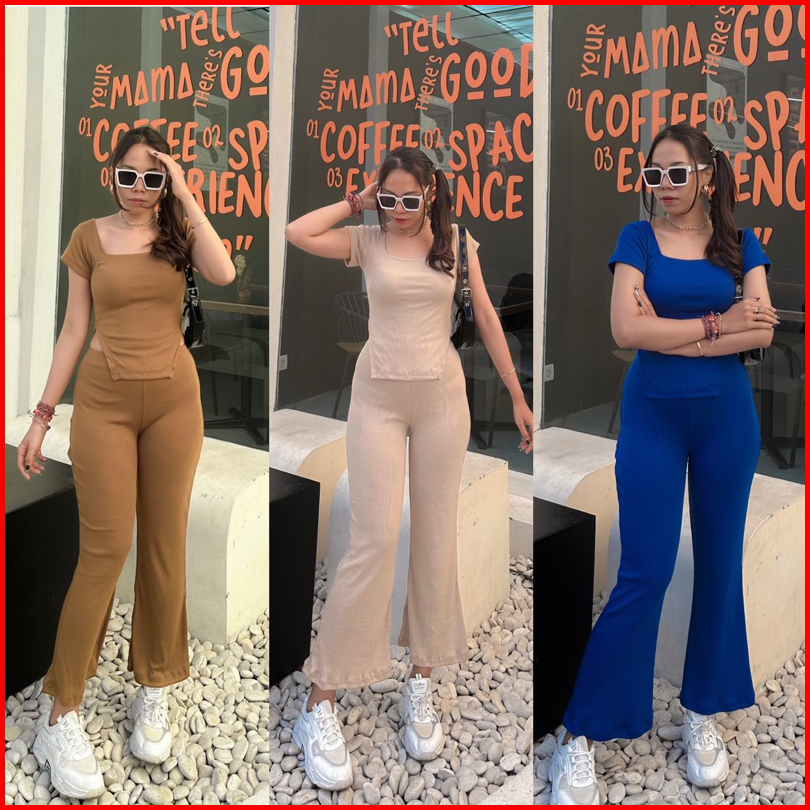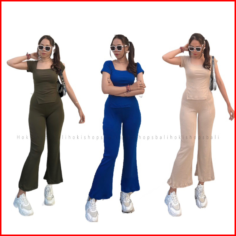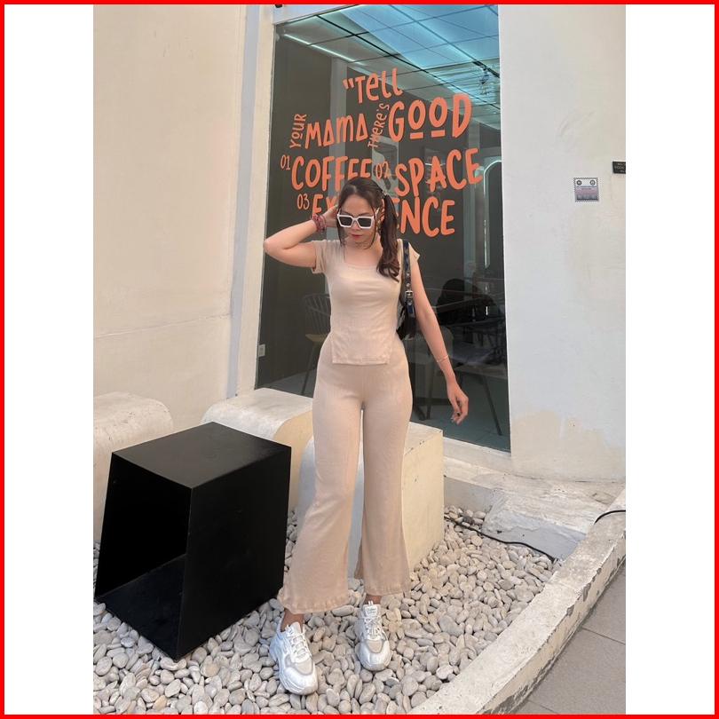 Hoki - Joly Chic Knit Set Korean Style Ribbed Cullote