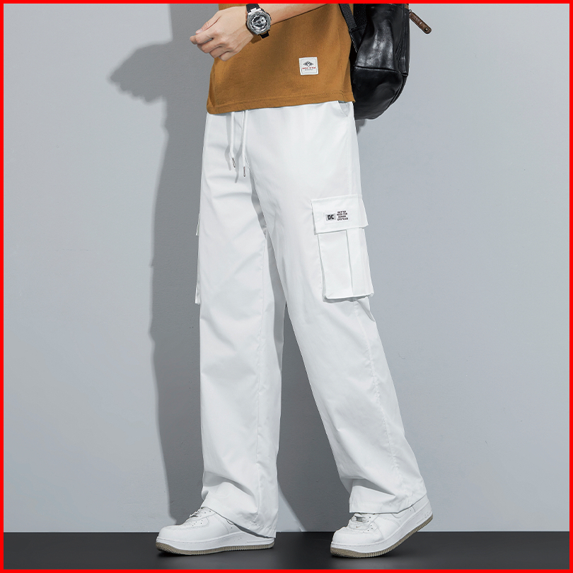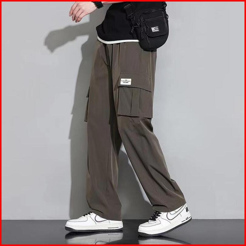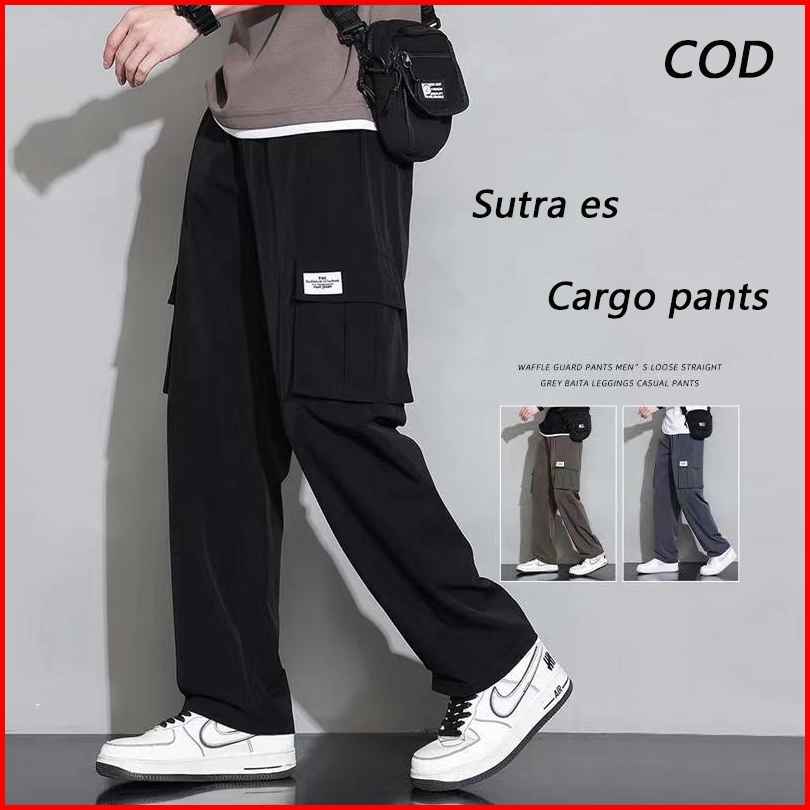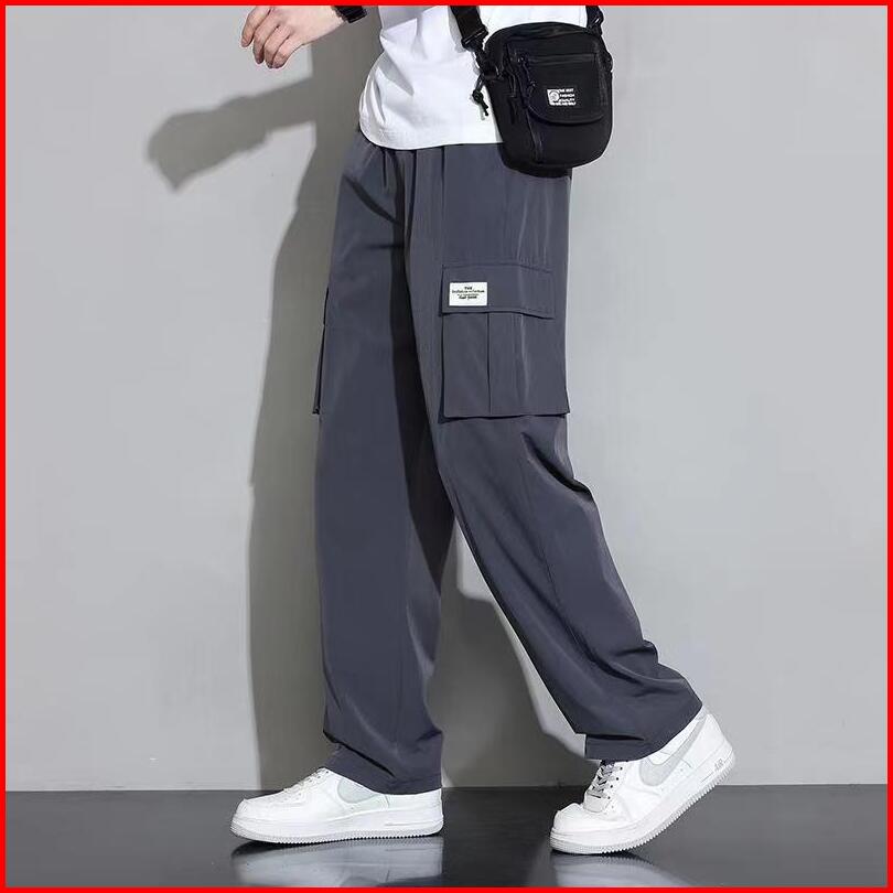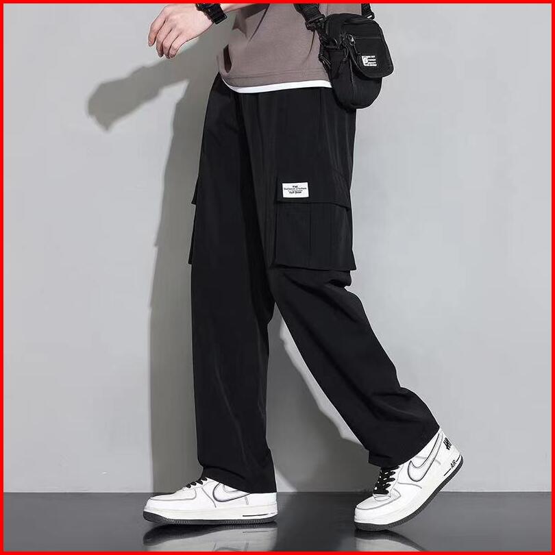 Celana Kulot Pria Hitam Celana Longgar Pria Kain Dingin Sutra Es Cargo Straight Pants Korean Style Fashion Elastis Loose