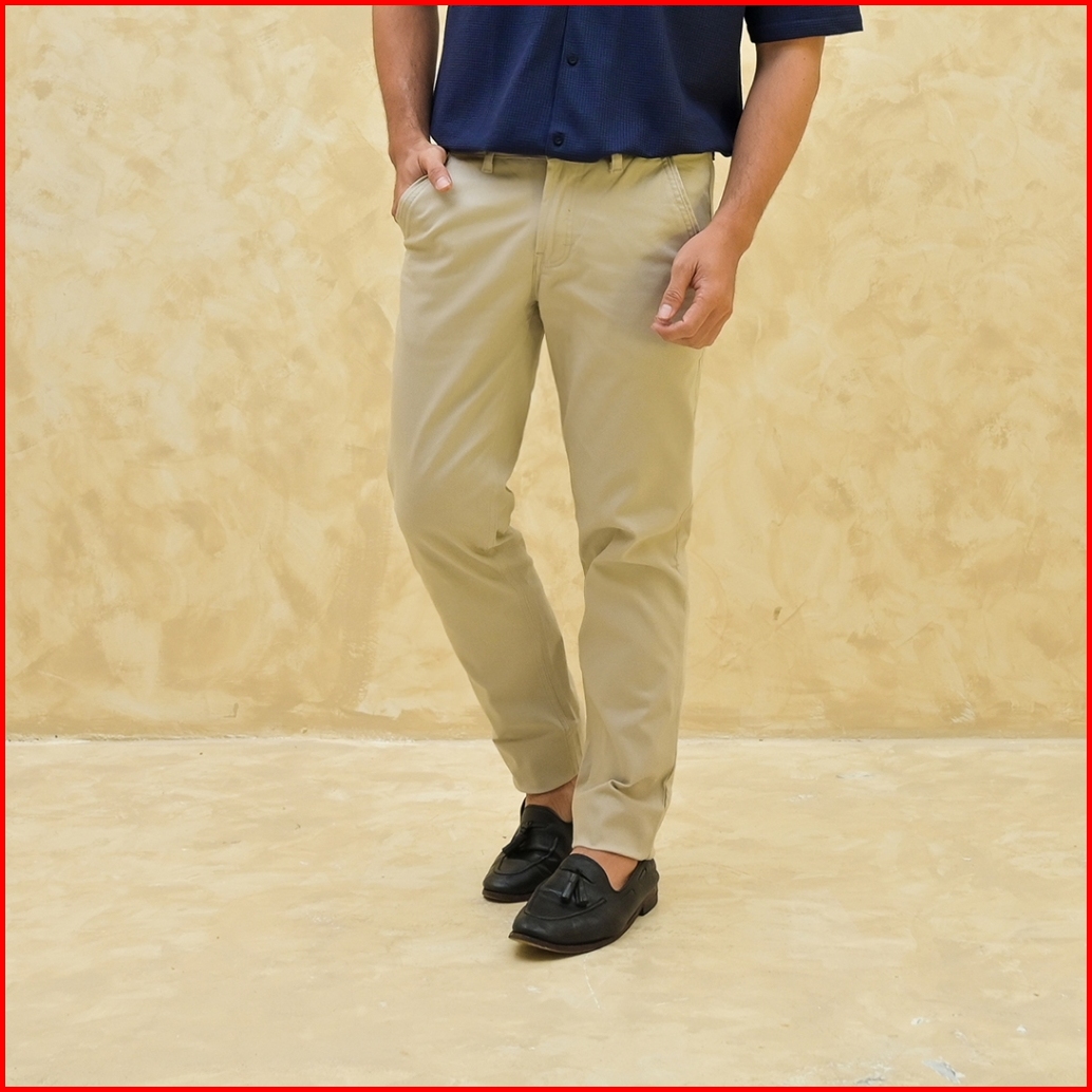 Mickout Rivers Chino Pants - Celana Panjang Pria Stretch Cotton Slim Straight Fit - Cream