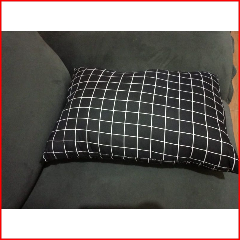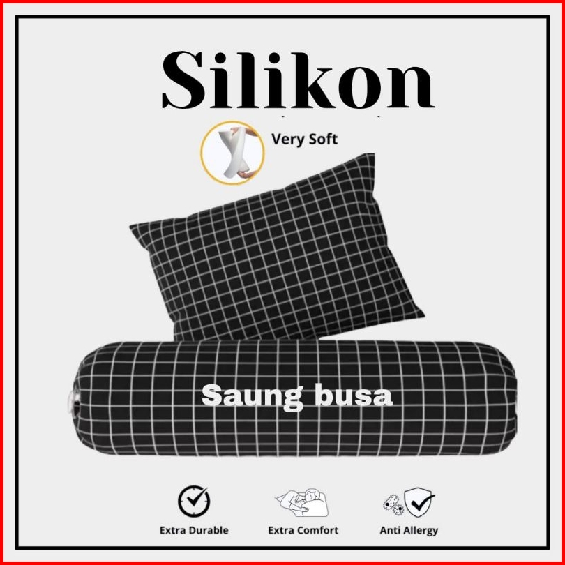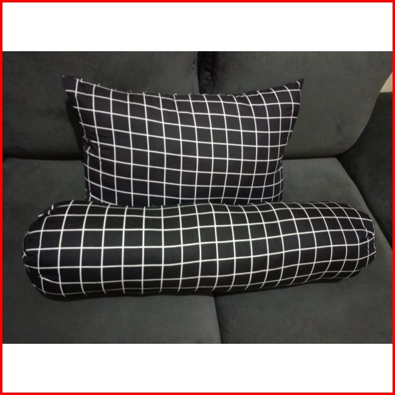 Bantal Guling Silikon 1 Set Premium Motif Kotak Hitam Bantal 60x40 Guling 80x20 Anti Kempes Empuk Anti Allergic
