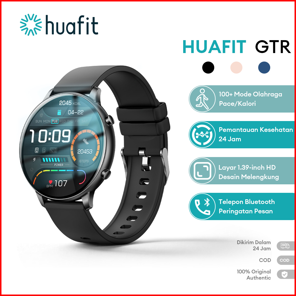 Huafit Gtr Smartwatch Asli Pria Wanita Layar 46mm Panggilan Bluetooth Pace Lari Wallpaper Khusus Pemantauan Detak Jantun