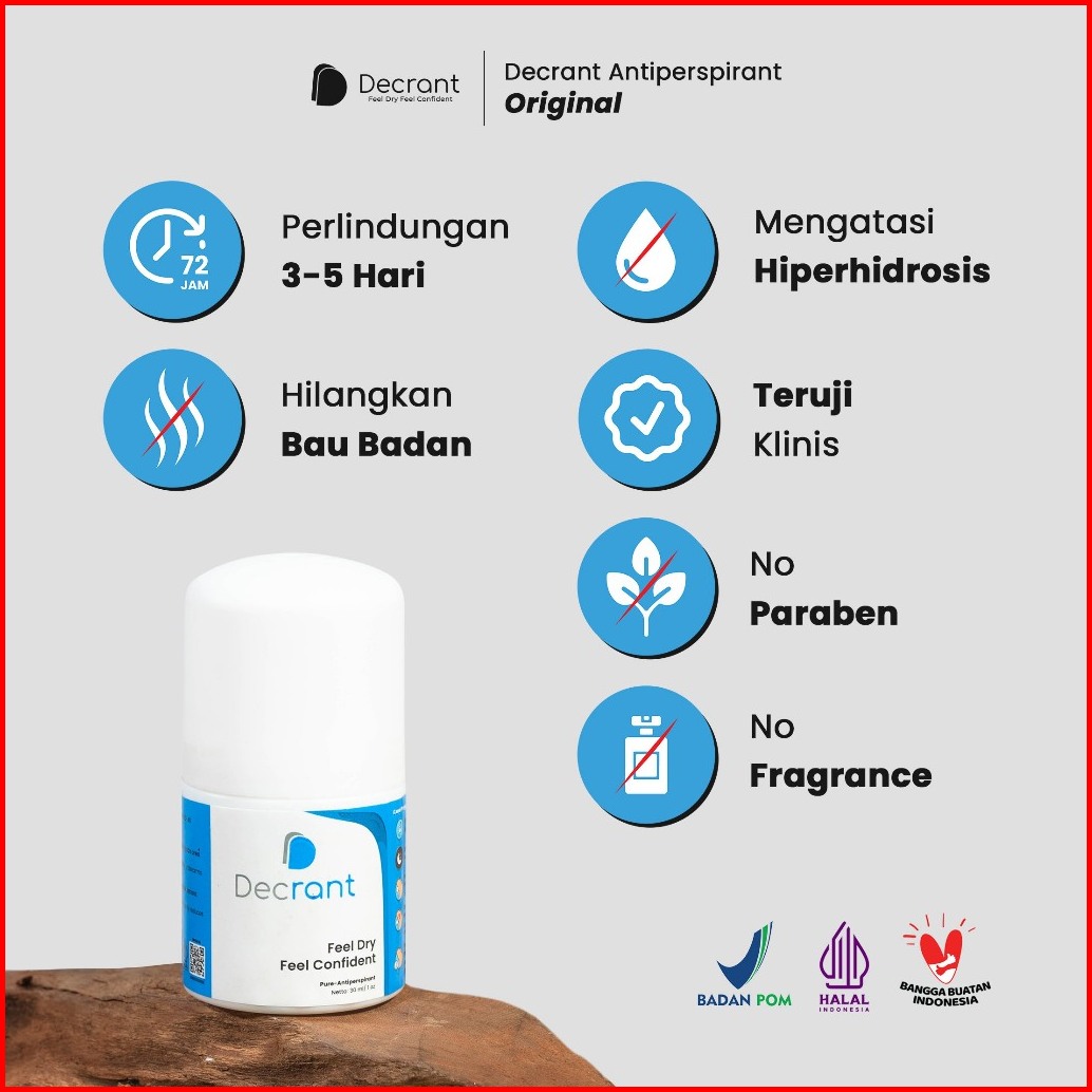Decrant Antiperspirant Original Deodoran Roll On - 30ml Solusi Ketiak Basah Dan Bau Badan