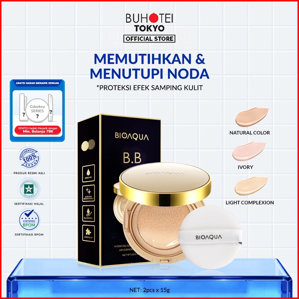 Buhotei Bioaqua Poreless Bb Cushion Full Coverage Flawless Bb Cream Air Cushion Waterproof Original 100 Bpom Dan Halal 1