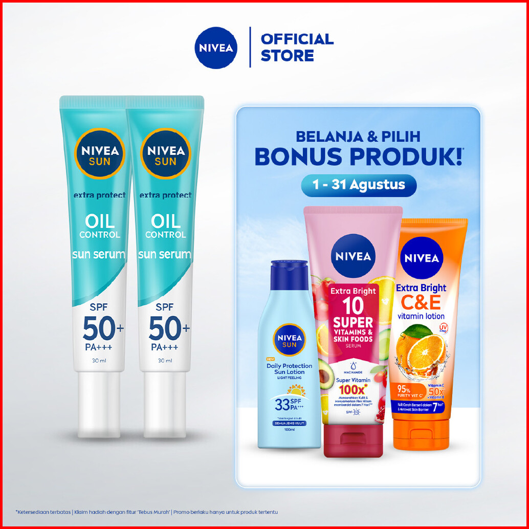 Paket Hemat Isi 2 Nivea Sun Sunscreen Face Serum Extra Protect Oil Control Spf50 Pa 30ml - Sunscreen Wajah Serum Sunbloc