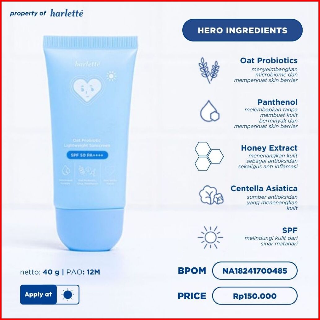 Harlette Oat Probiotic Lightweight Sunscreen Spf 50 Pa Sensitive Acne Prone Uv Protection Skin Barrier Melindungi Wajah