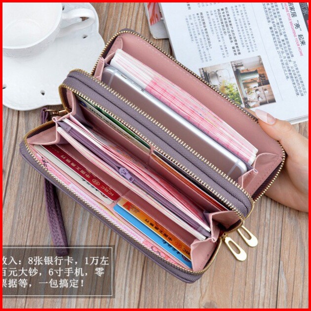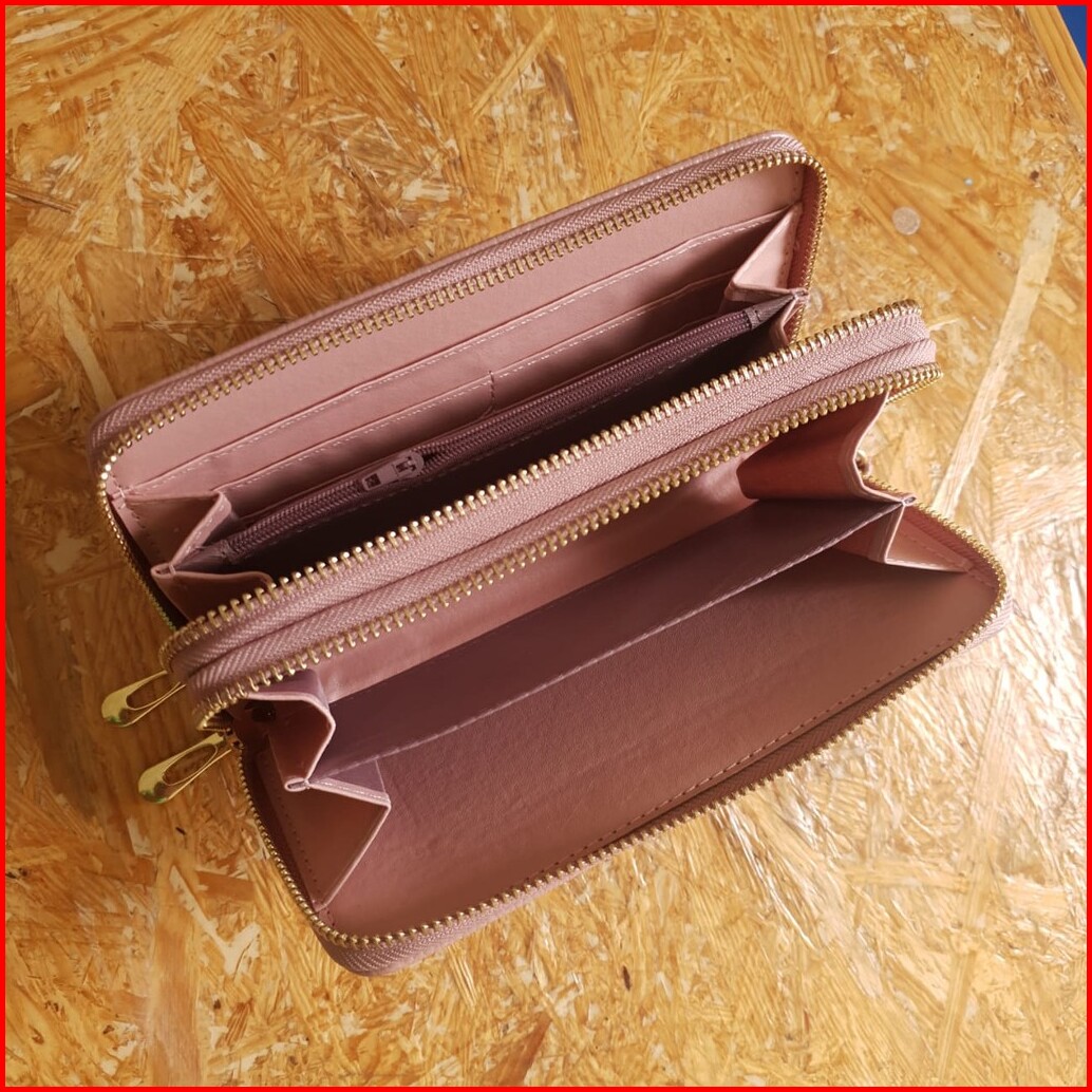 Dompet Wanita 2 Resleting Premium Pink Kulit Panjang Korea Murah Fashion Ariha Wa119p3 Tali