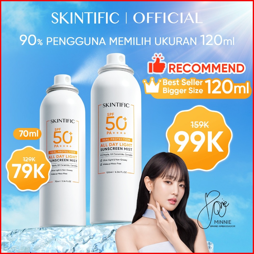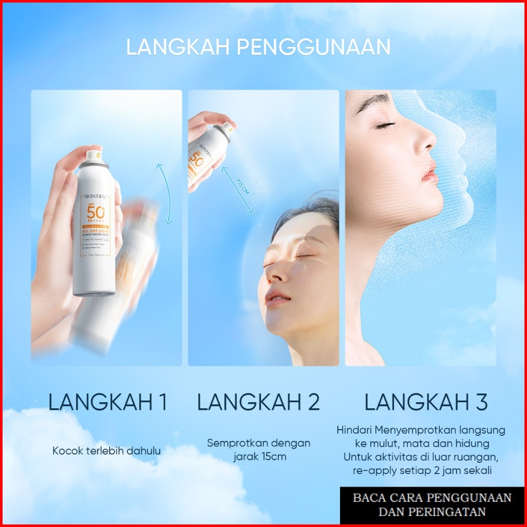 Skintific - All Day Light Sunscreen Mist Spf 50 Pa 120ml Sunscreen Spray Uv Mist Tone Up Sun Shield Sunscreen Sunblock W
