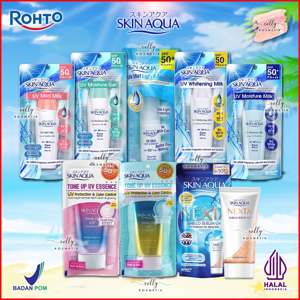 Mild Milk SPF50 Pink, MoistGel SPF50 Hijau, MoistMilk SPF50 Biru, ToneUp UV SPF50 Ungu, Whitening Milk SPF50, ToneUp UV Mint, UV Mist SPF50, NEXTA Shield Serum, Tone Up Rose, Tone Up Latte