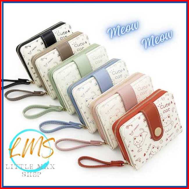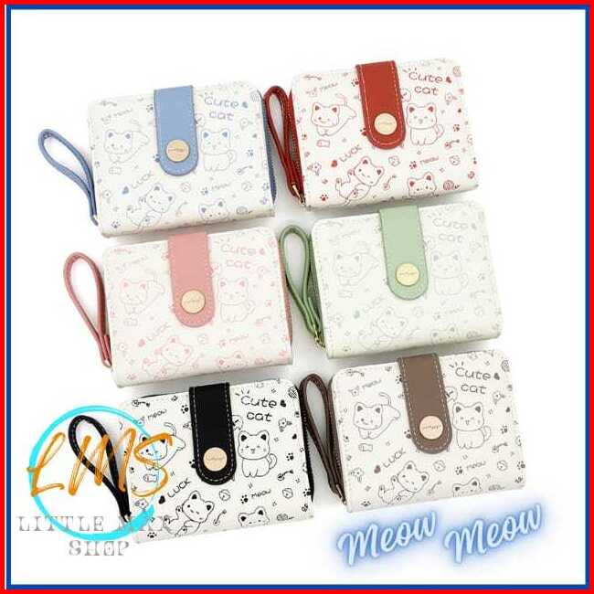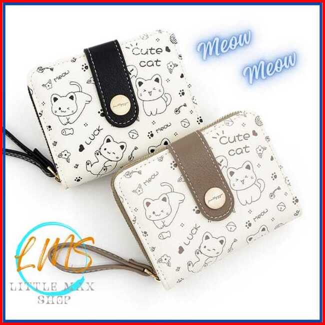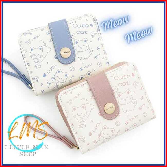 Lms Dompet Lucu Wanita Cute Cat Dompet Lipat Mini Korean Kulit Pu Fashion Resleting
