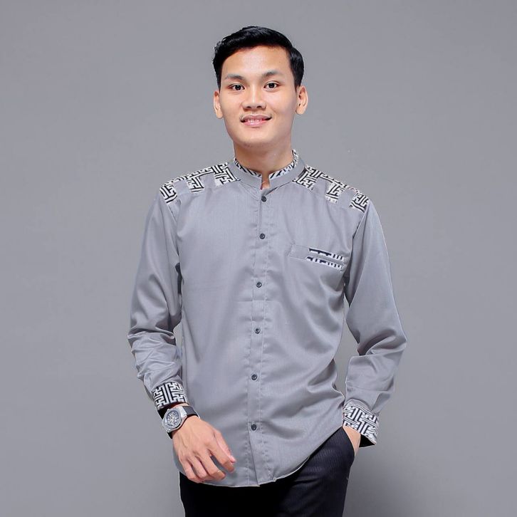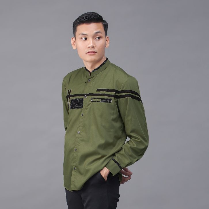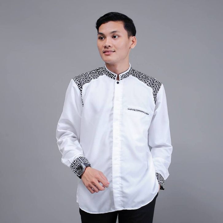 Baju Koko Pria Elrumi Lengan Panjang Motif Zolied Warna Hitam Kombinasi Batik