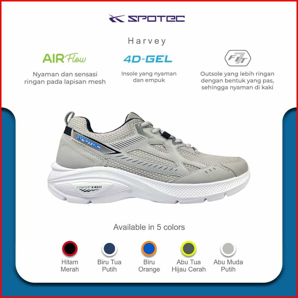 Spotec Sepatu Running Artikel Harvey-abu Muda Putih