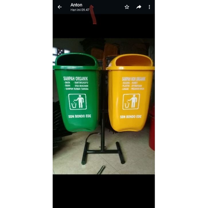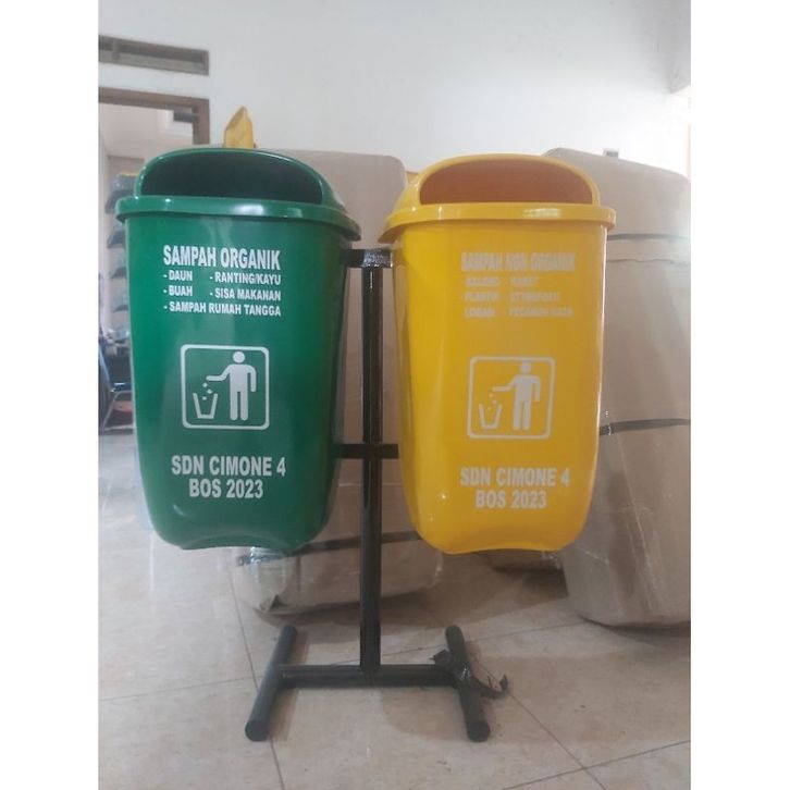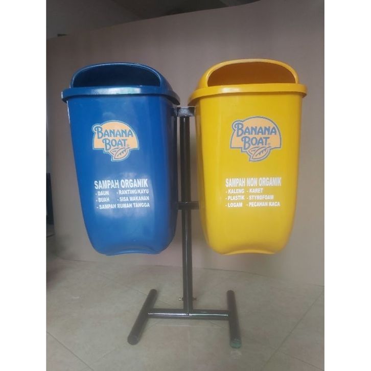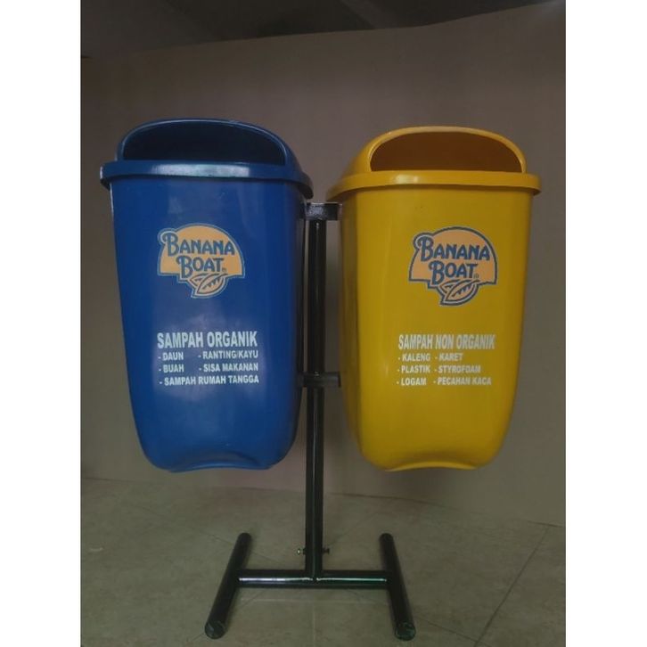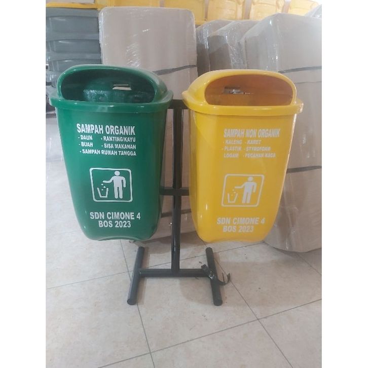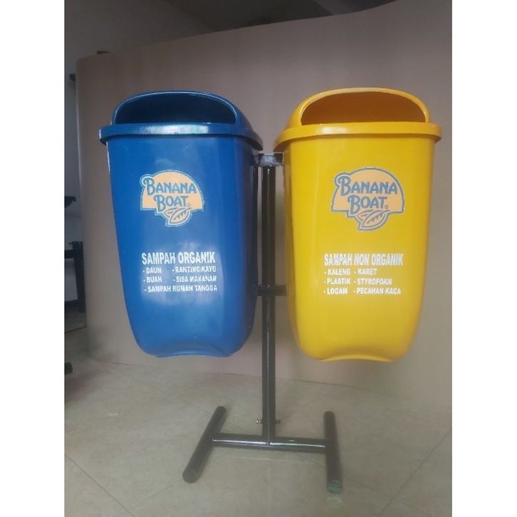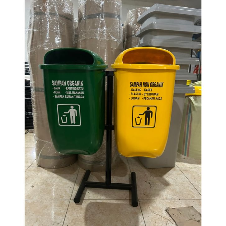 tempat sampah 2 pilah kapasitas 60 litter model oval gantung, tempat sampah outdoor, tempat sampah fiber, tempat sampah