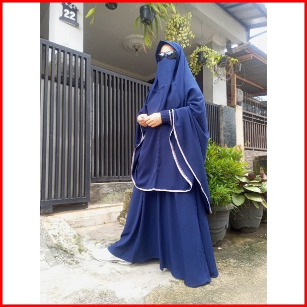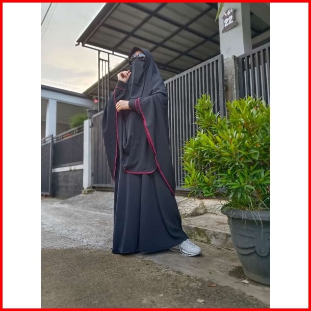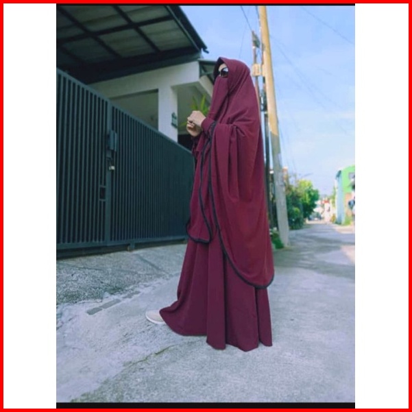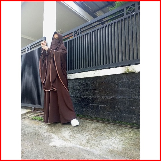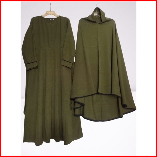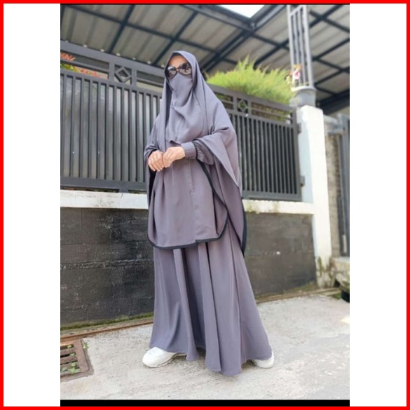Gamis Syari Wolfis Wolpeach Set Khimar Cadar Murah