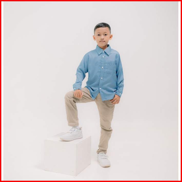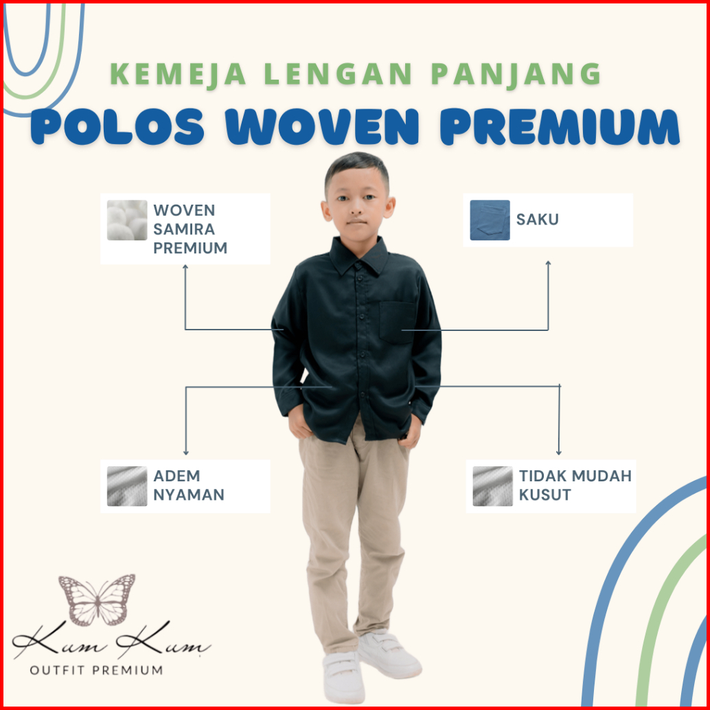 Kemeja Anak Lengan Panjang Alif Kids Polos Premium Trendy Kekinian Bahan Woven Kumkum
