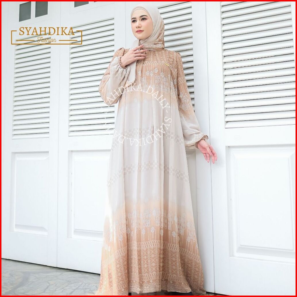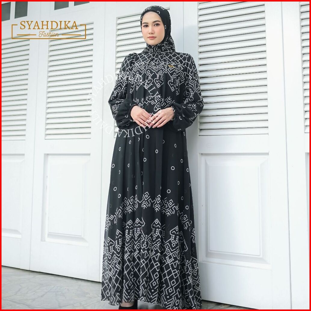 Gamis Jumbo Terbaru Ceruty Babydoll Full Furing Resleting Depan Dress Set Hijab Jumbo Size Ld 130 Premium Syahnaz By Sya