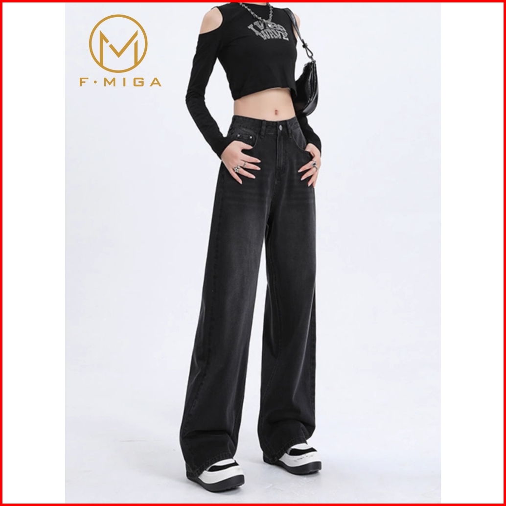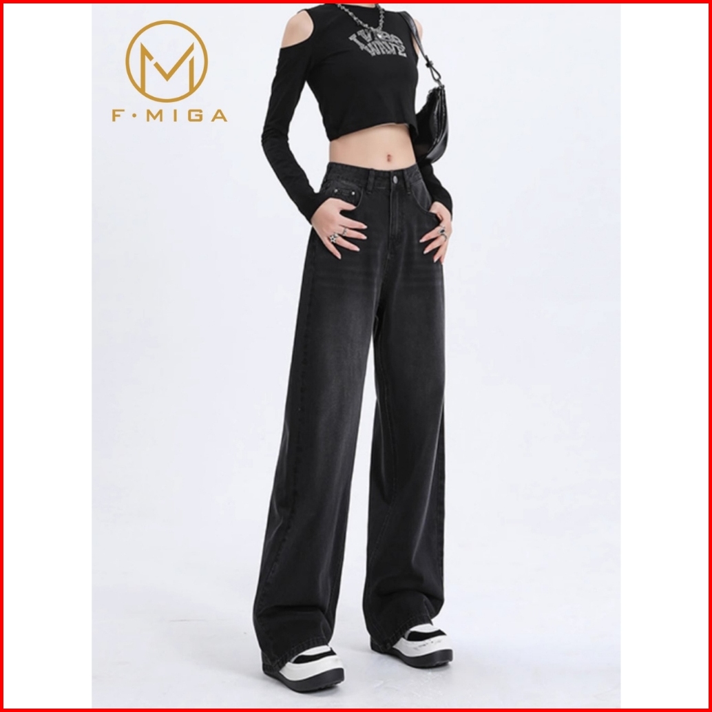 F Miga C105 Celana Jeans Wanita High Waist Celana Jeans Panjang Wanita Korean - Hitam