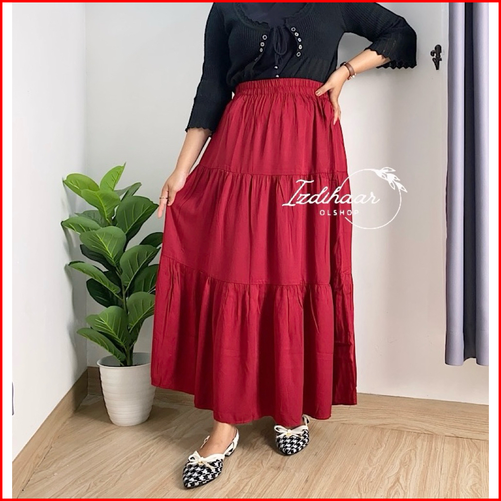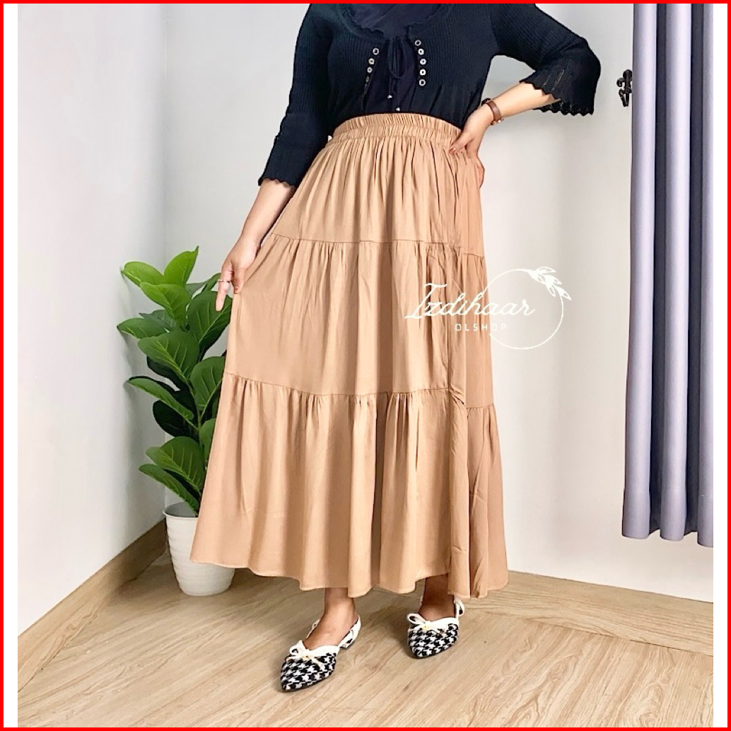 Rok Skirt Susun Rok Matt Rayon Twill Rok Bawahan Wanita