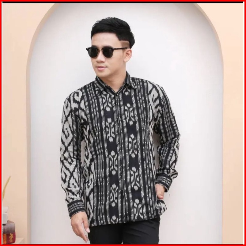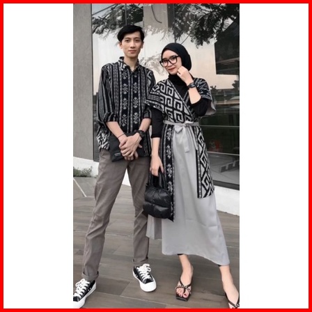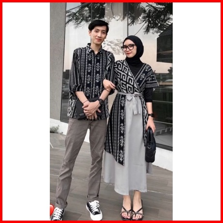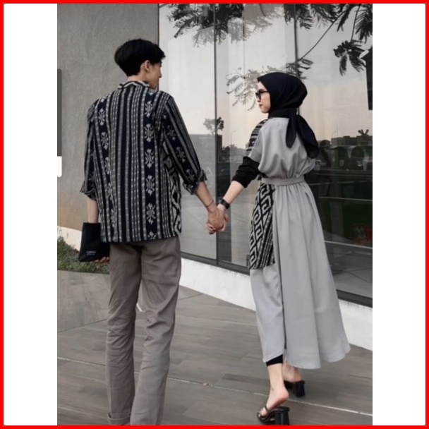 Baju Tenun Couple Dress Naomi Hitam X Kemeja Pria Lengan Panjang Batik Couple Kondangan Pasangan