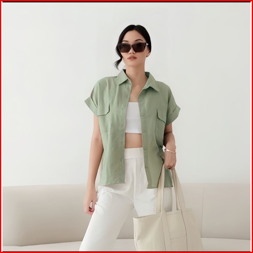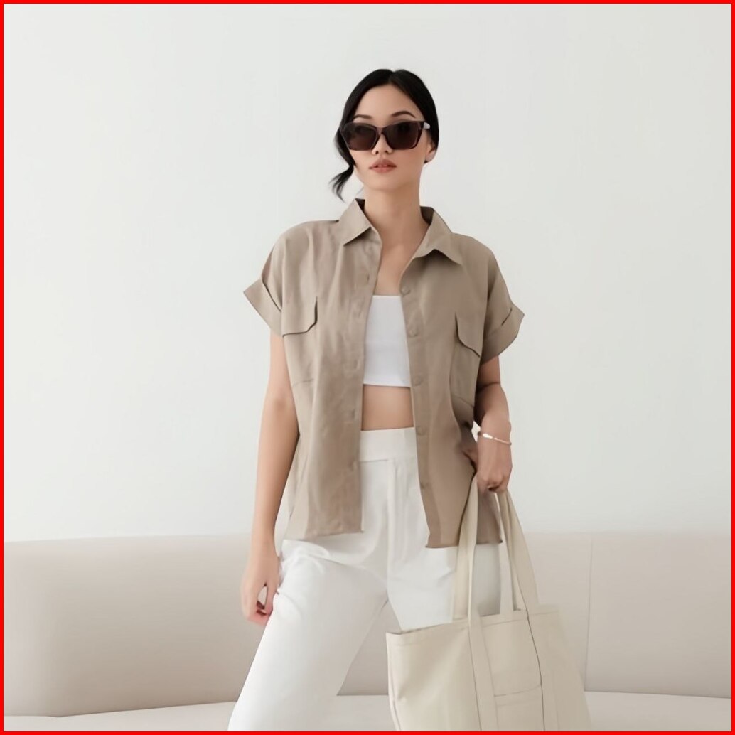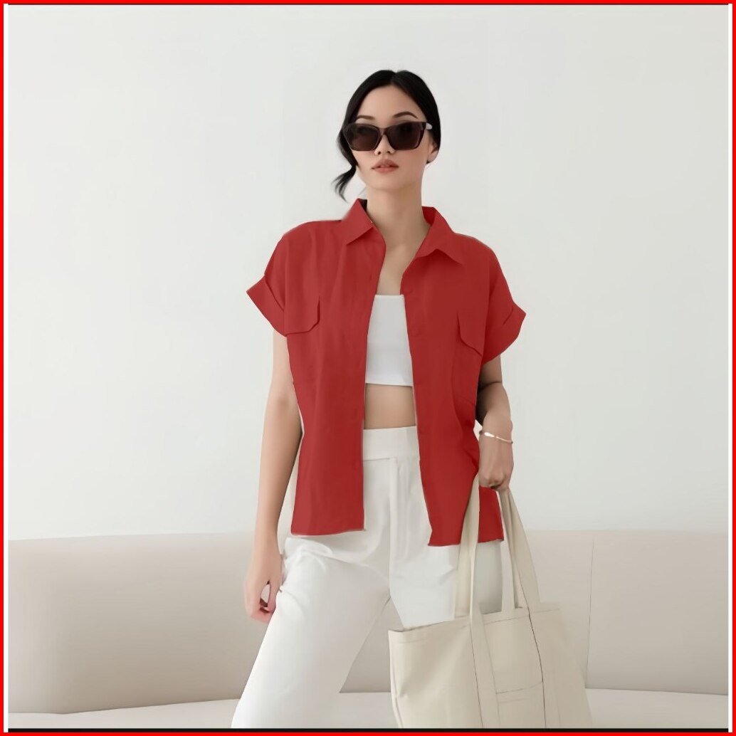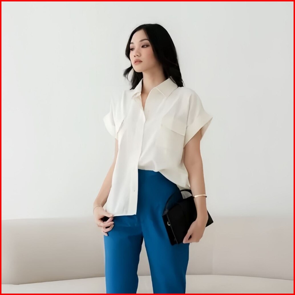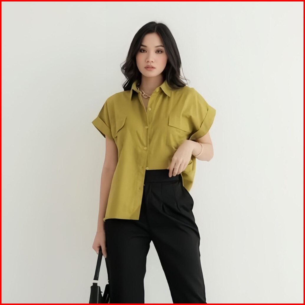 Khansa Atasan Kemeja Polos Wanita Lengan Pendek Baju Daily Wear Kekinian Korean Style