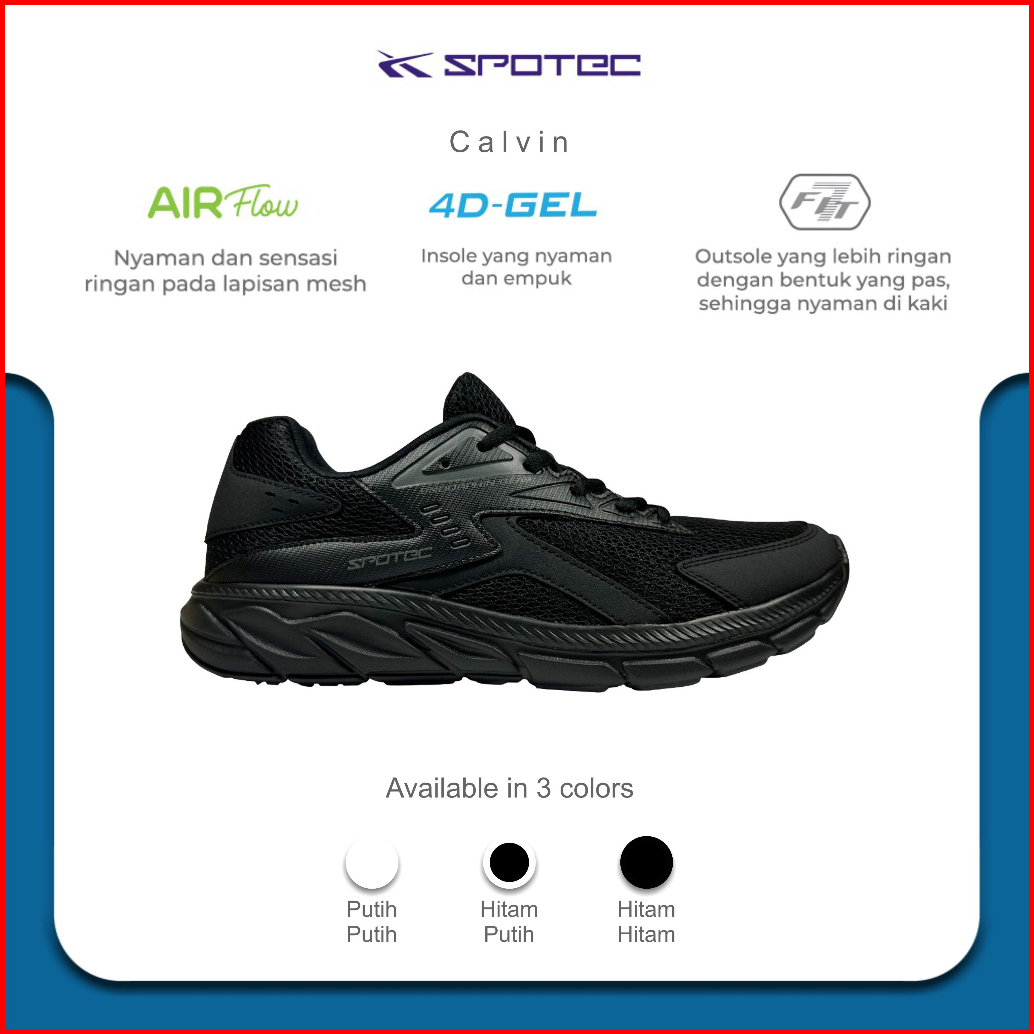 Spotec Sepatu Student Artikel Calvin-hitam-hitam Original Spotec