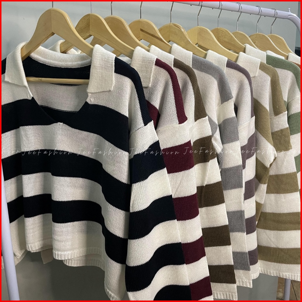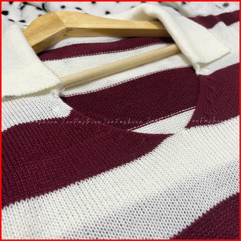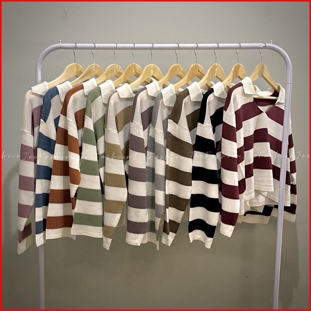 Baju Rajut Crop Wanita Stripe Garis Crop Top Blaster Fuji Tebal Original 7 Gate Get