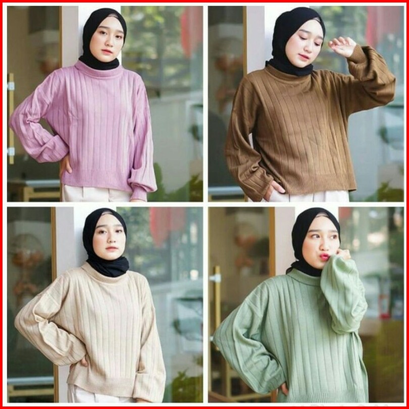 Promo Baju Rajut Wanita Jovanka Turtleneck Rajut Buble Oversize Turtleneck Knitwear Arsyilla