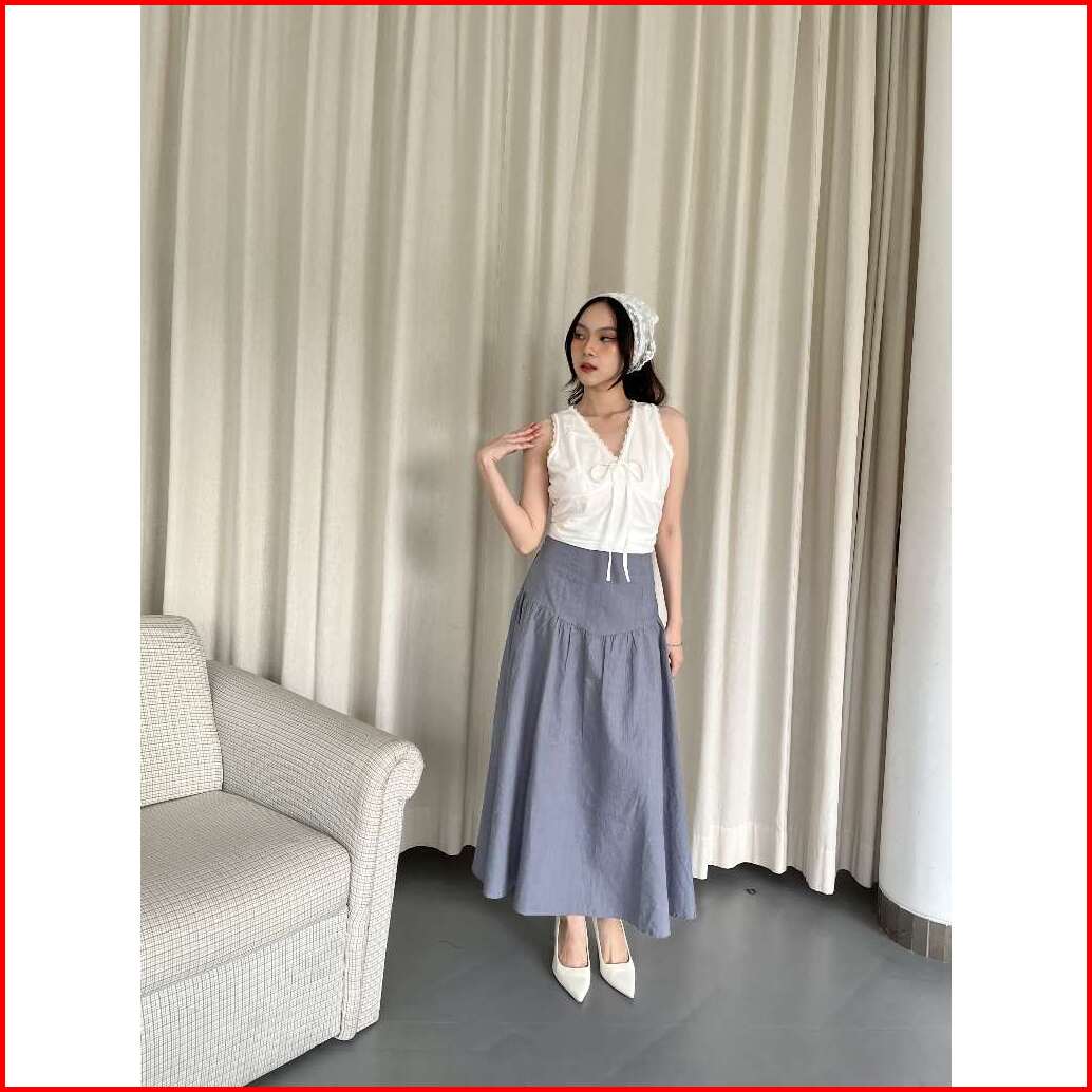 Peachpoppy Valen Long Skirt - Rok Panjang Wanita Maxi Cotton Skirt Rok Fashion Korea