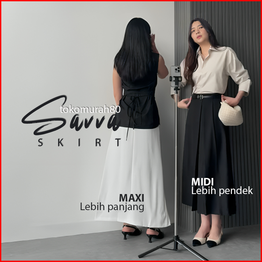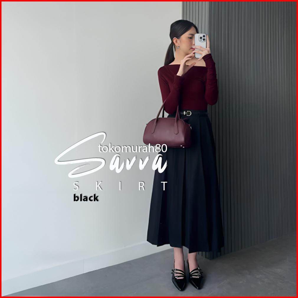Savva Skirt Rok Panjang Long Skirt Rok Kerja Kantor Cewek Terbaru Kekinian Highwaist Maxi Skirt