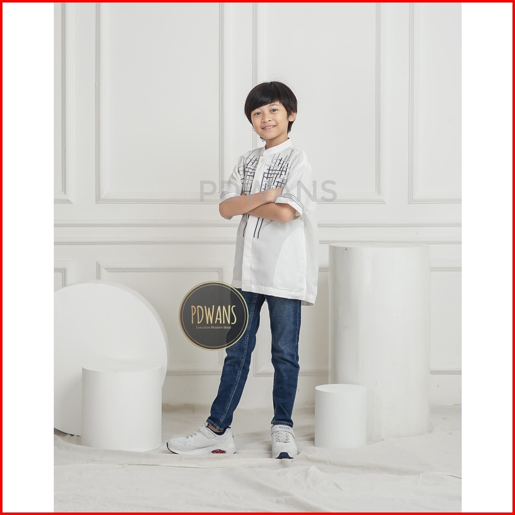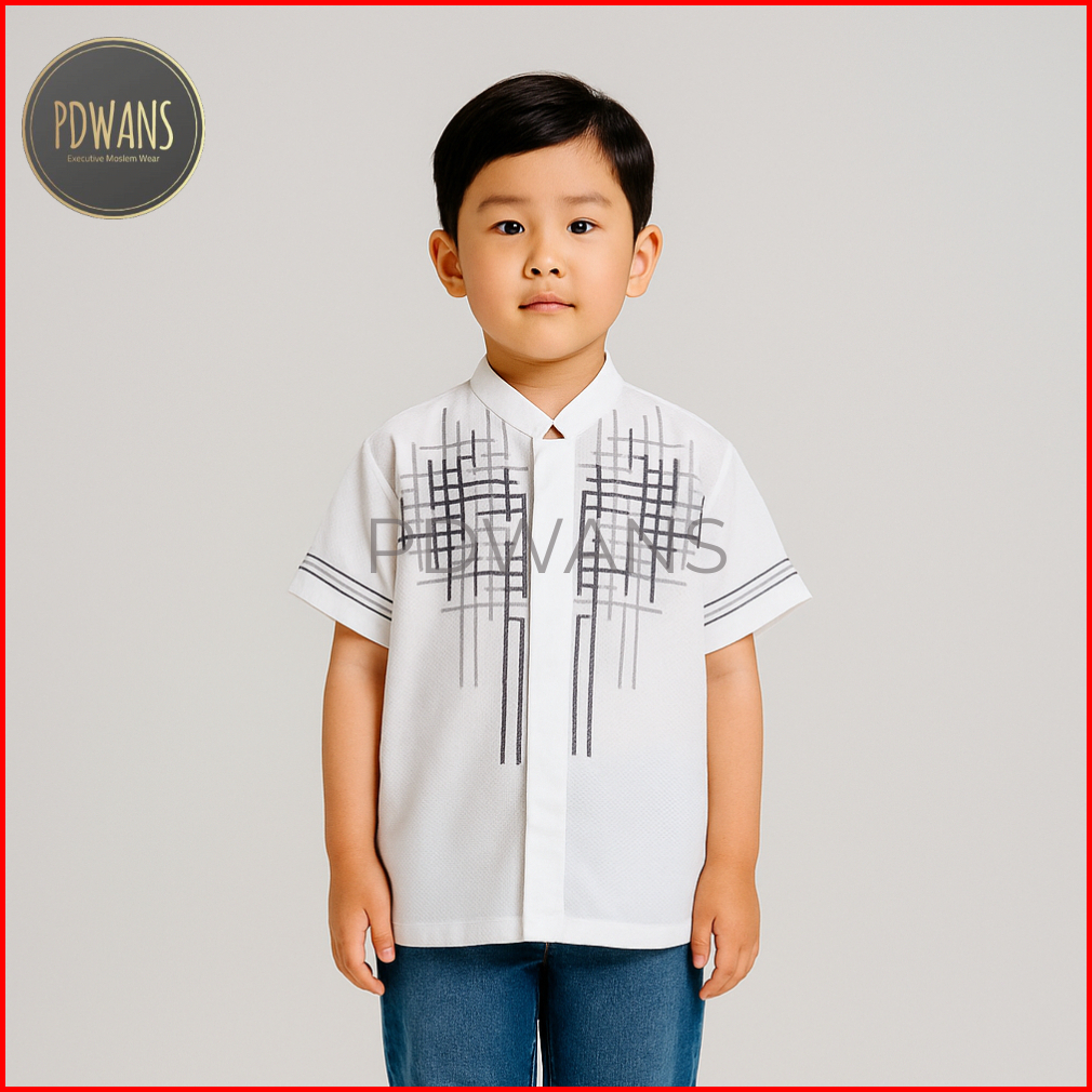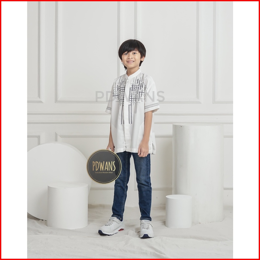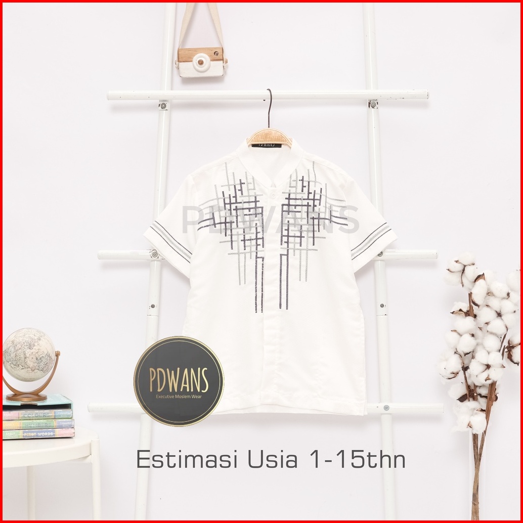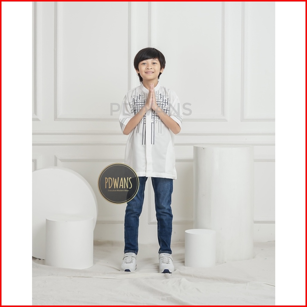 Baju Koko Anak Remaja Tanggung Lengan Pendek Putih Kemeja Koko Muslim Bordir Pdwans - Rd18tgg