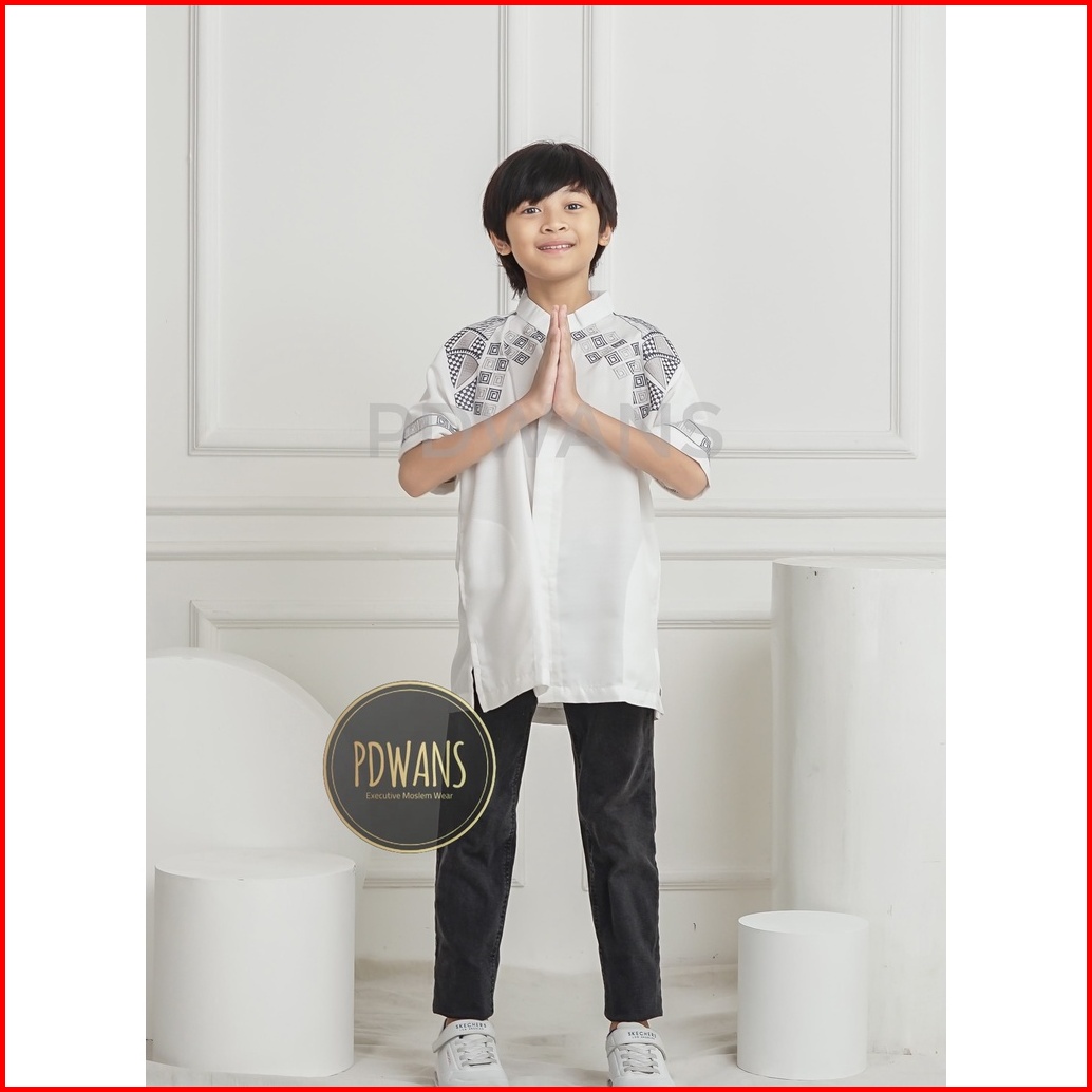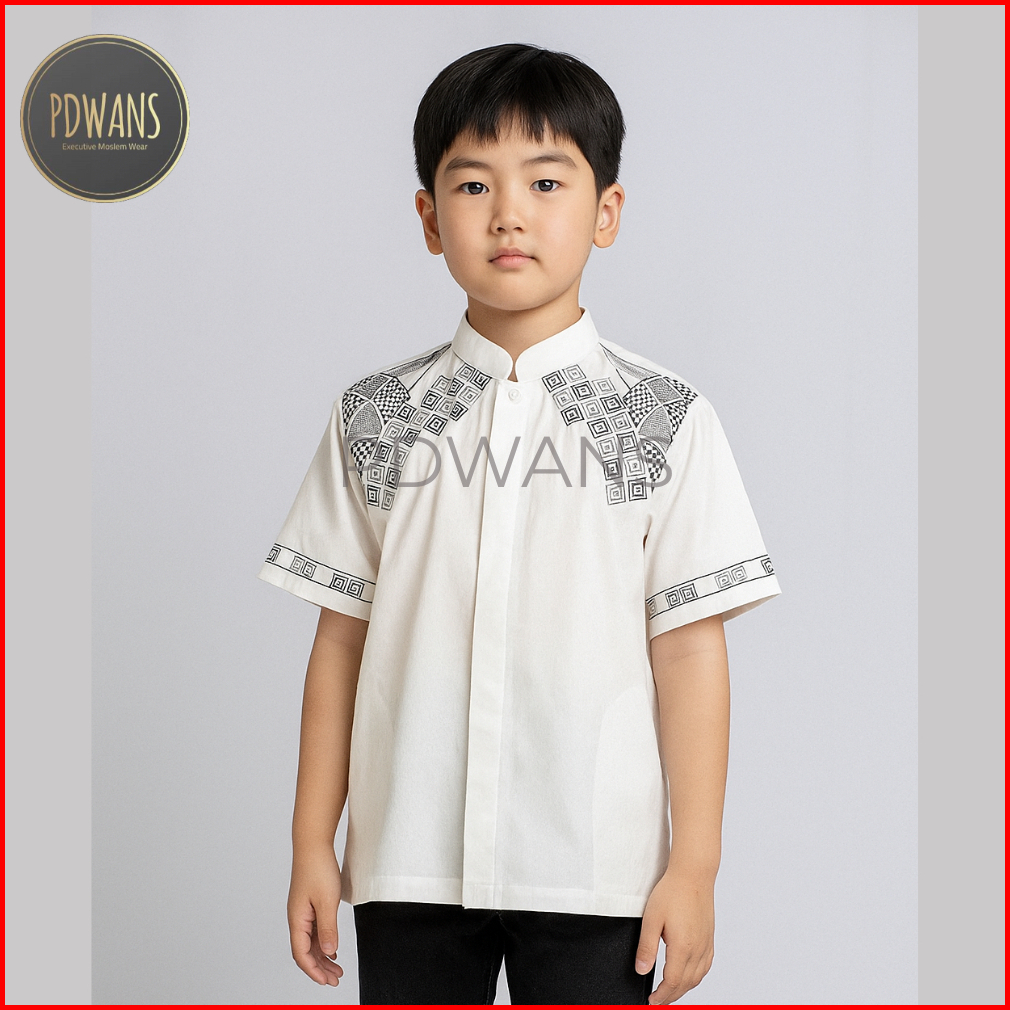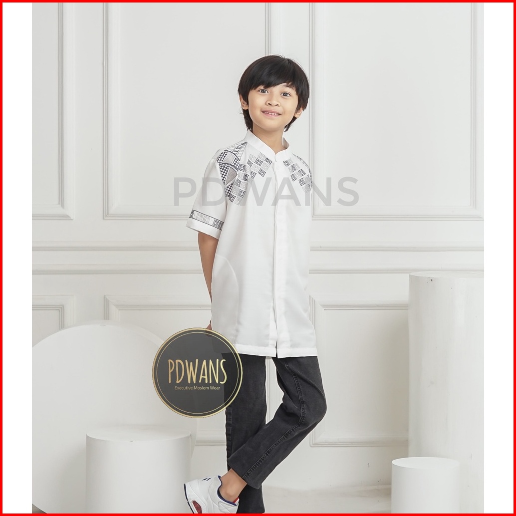 Baju Koko Anak Remaja Tanggung Lengan Pendek Putih Kemeja Koko Muslim Bordir Pdwans - Als22tgg