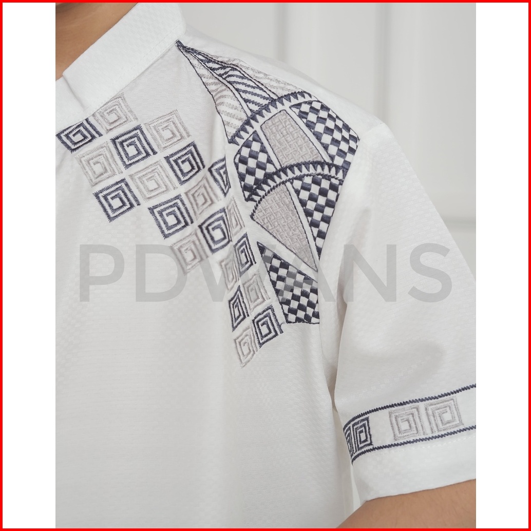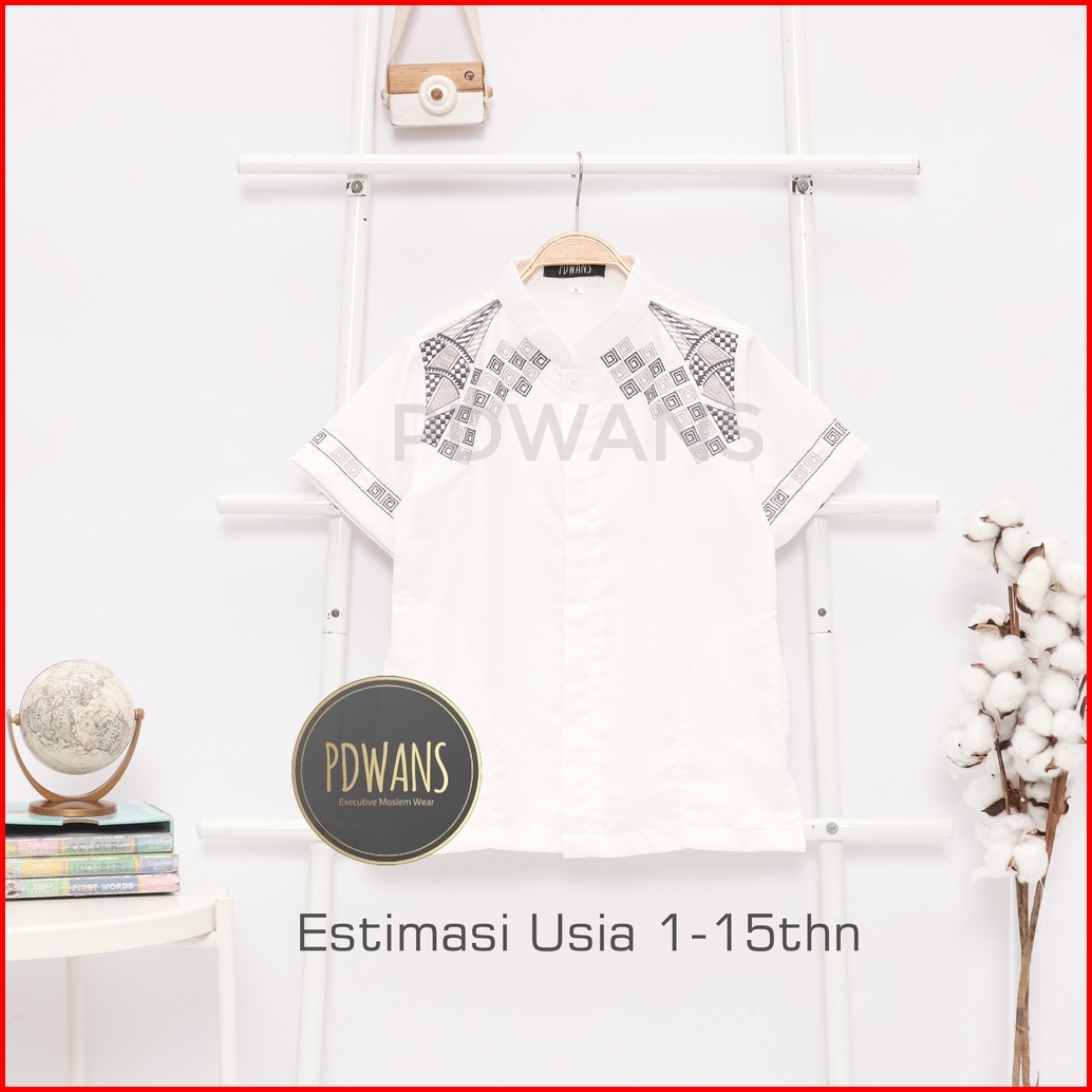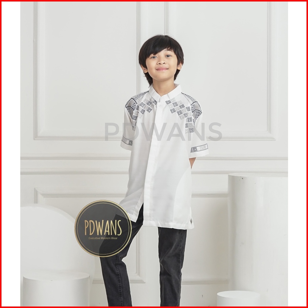 Baju Koko Anak Remaja Tanggung Lengan Pendek Putih Kemeja Koko Muslim Bordir Pdwans - Als22tgg