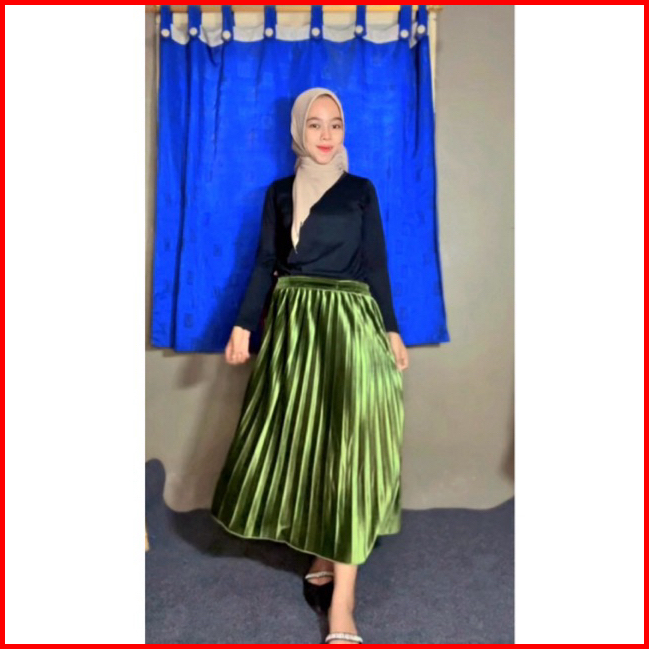 Rok Plisket Bludru Velvet 7 8 Premium Rok Plisket Bludru Pendek Rok Bludru Velvet 7 8