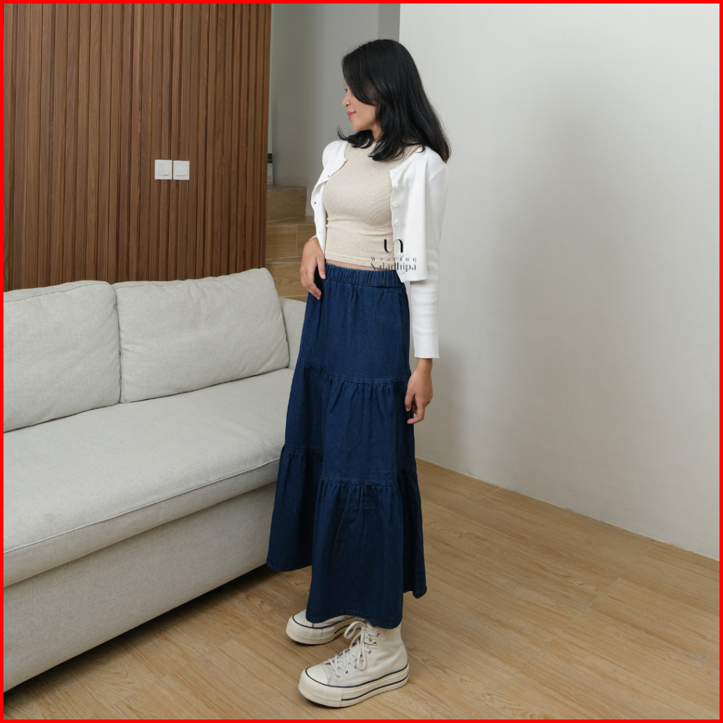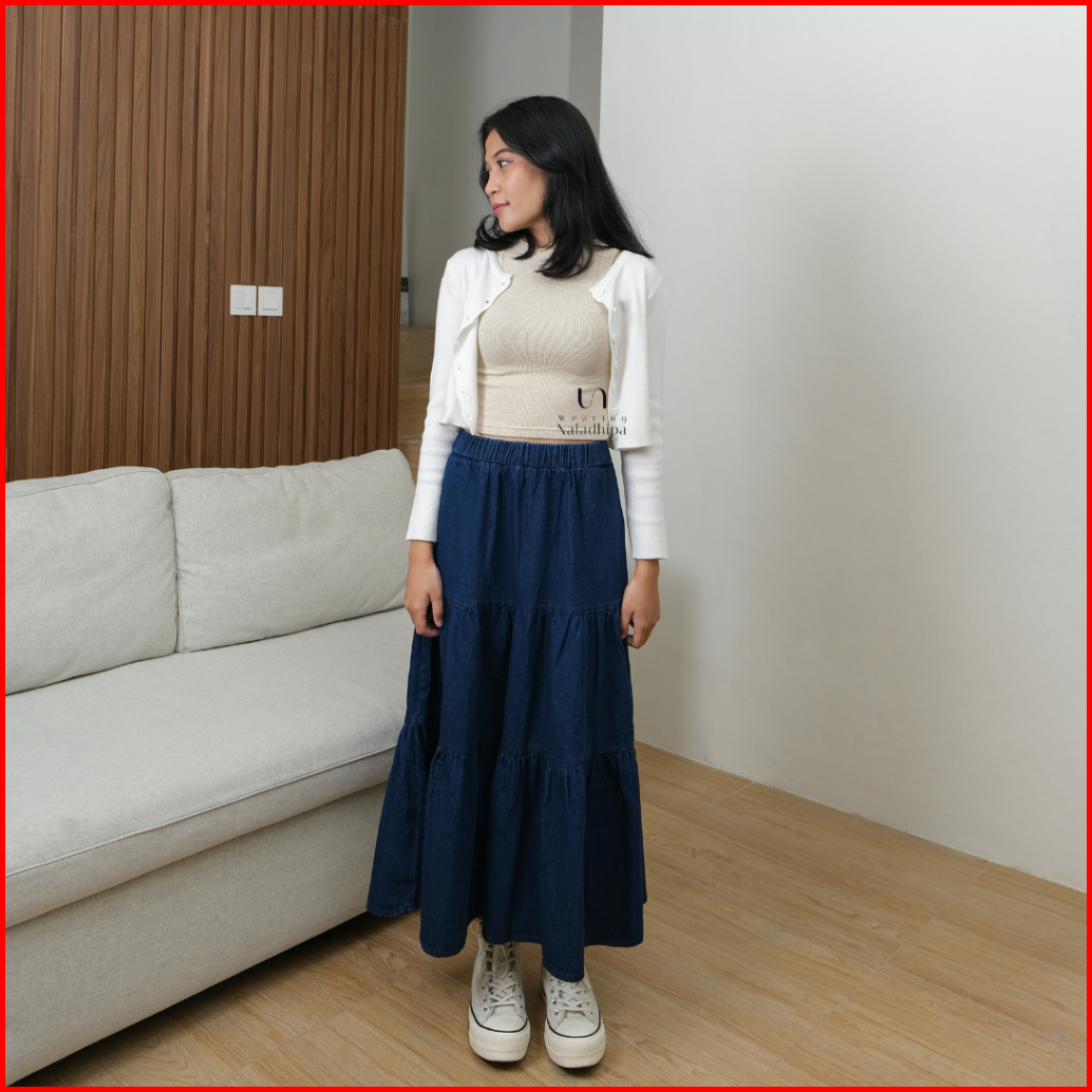Alara Skirt - Rok Layer Wanita Rok 3 Susun Wanita Long Skirt Basic Ruffle Skirt Rok Jeans