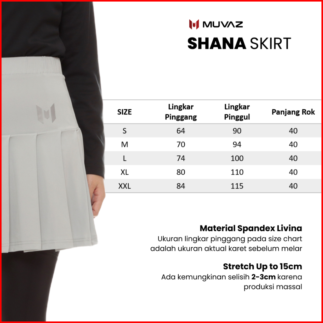 Muvaz Shana Skirt B - Rok Olahraga Wanita Polos Model Rampel Panjang 40 Cm - Varian Warna B