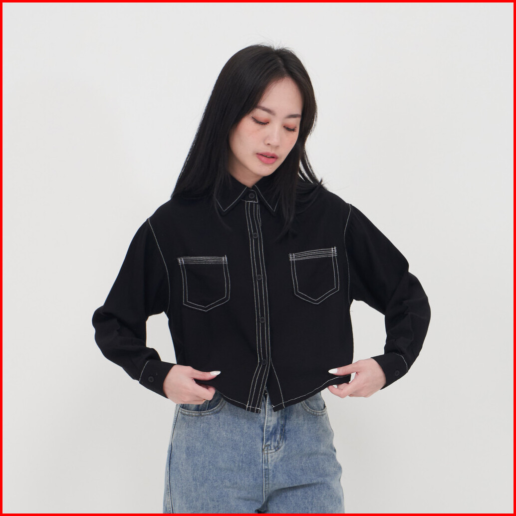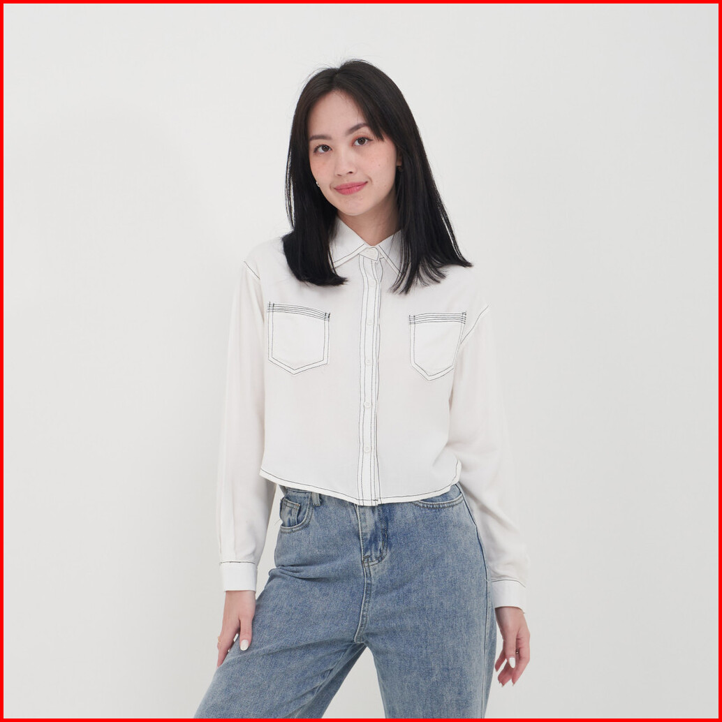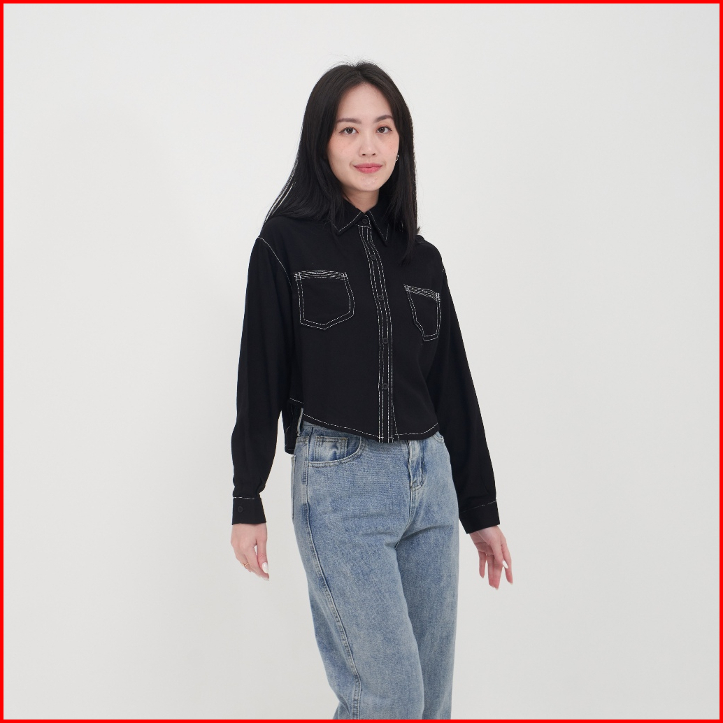 Queentin Kemeja Wanita Crop 0722 Rayon Viscose Polos Lengan Panjang
