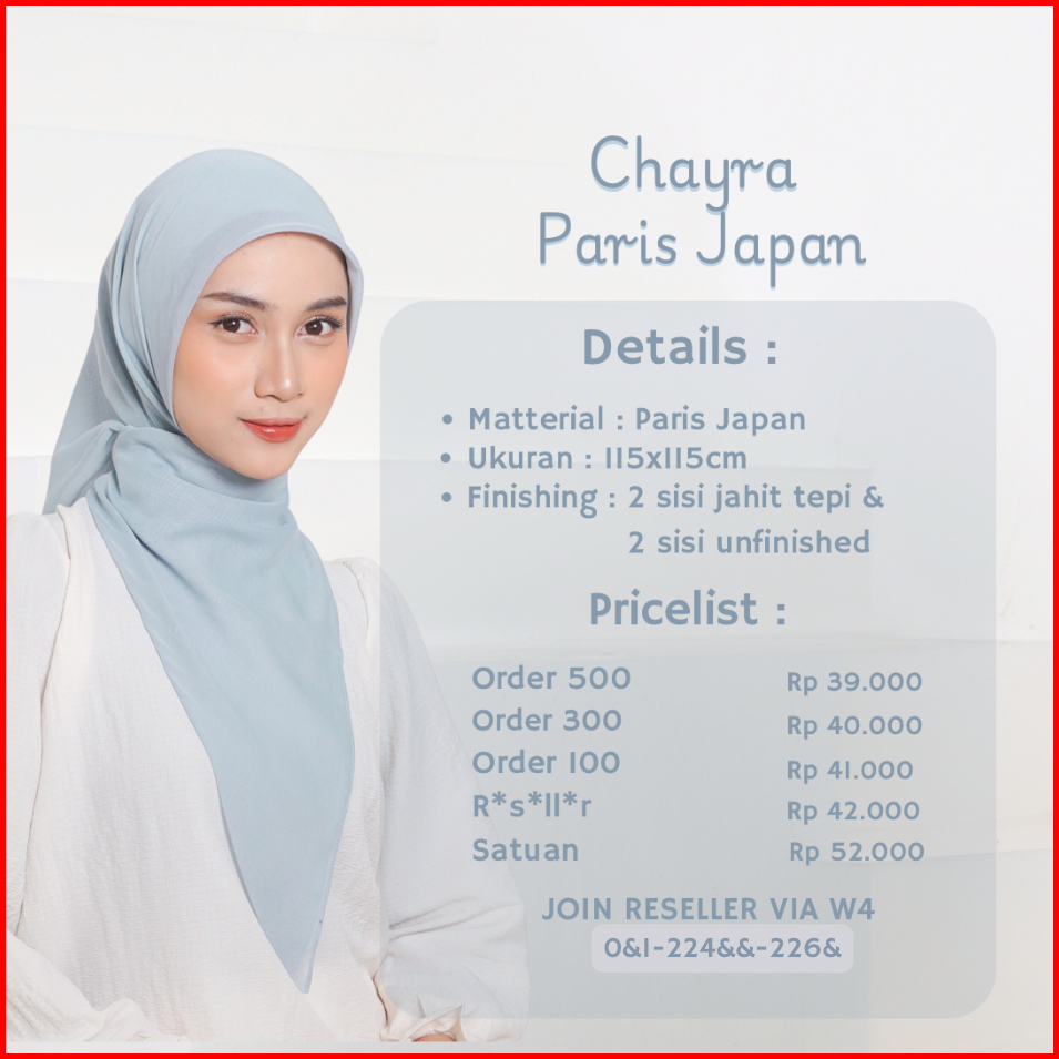 By.arsy Chayra Paris Japan Ori Premium Jepang Hijab Segiempat Tanpa Label