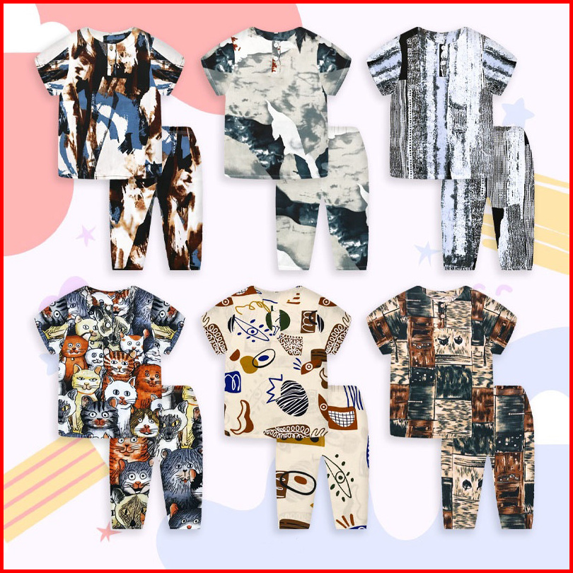 85ribu Dapat 2 Stel Pinvy 1-6 Tahun Littlefoot Setelan Rayon Anak Pendek Panjang Baju Anak Laki-laki Perempuan Bahan Ray