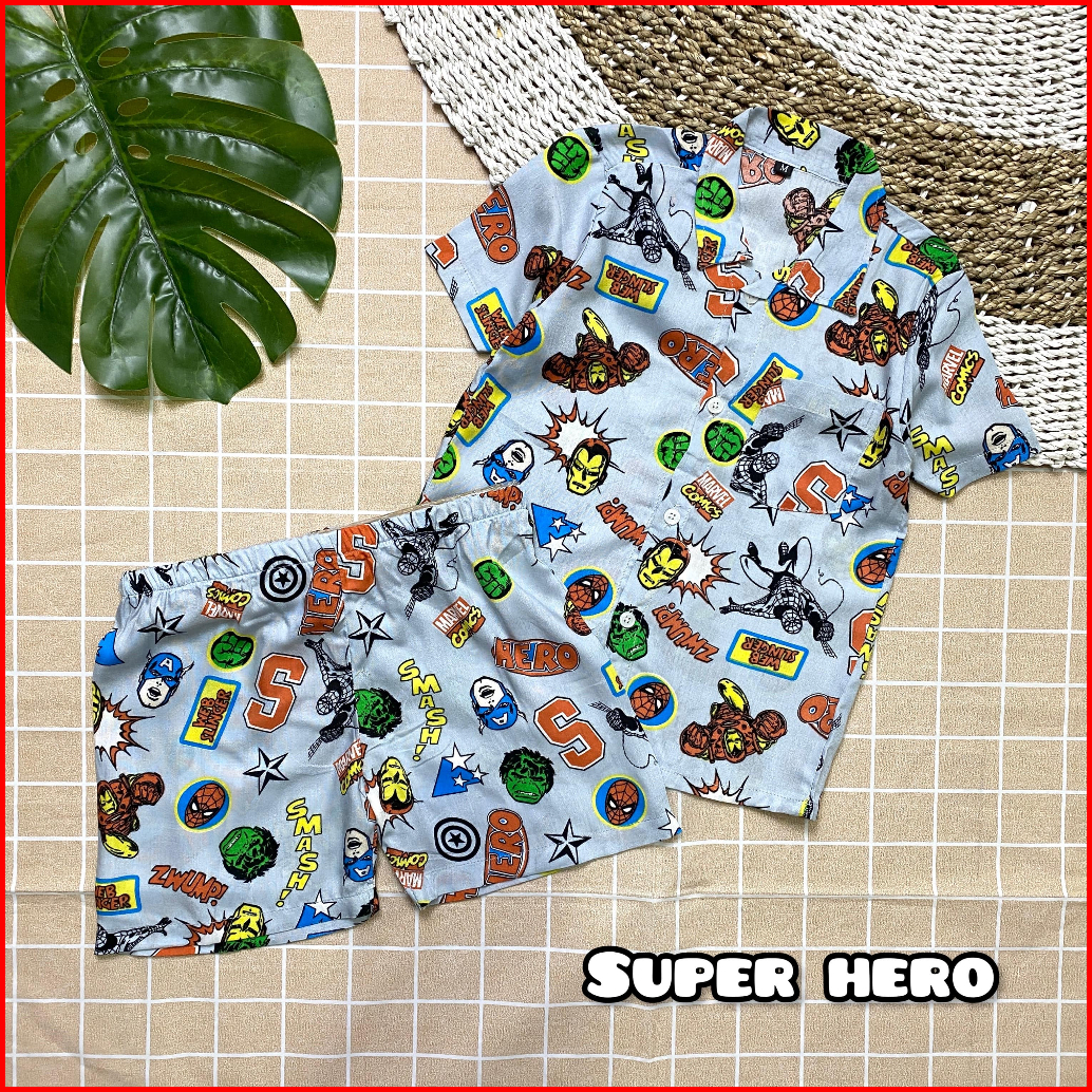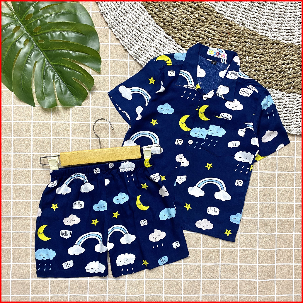 Setelan One Set Piyama Anak Bahan Rayon Motif Pakaian Tidur Anak Perempuan Laki-laki Unisex