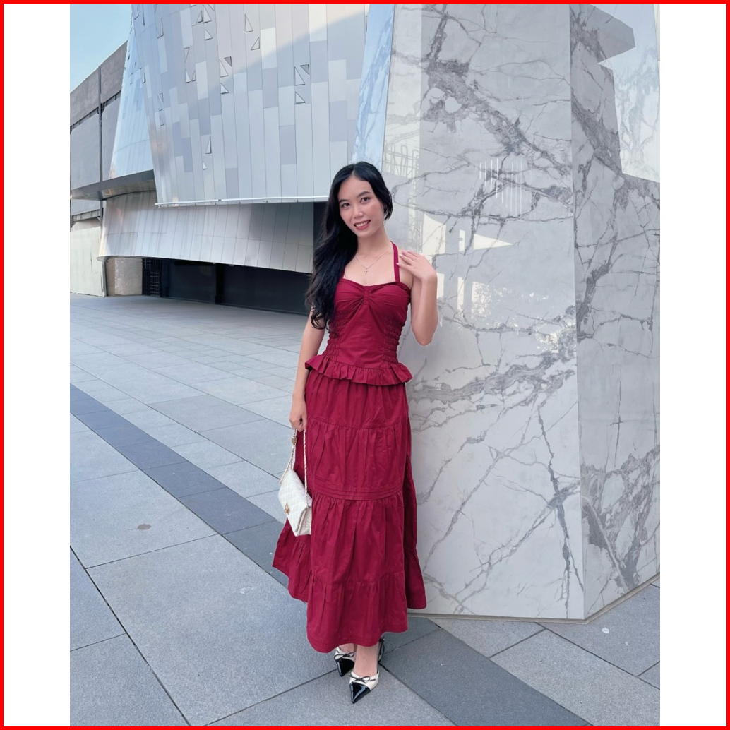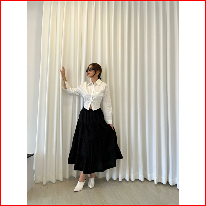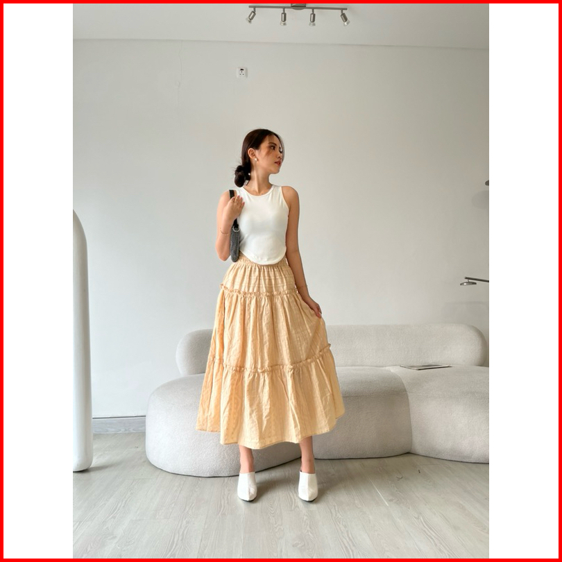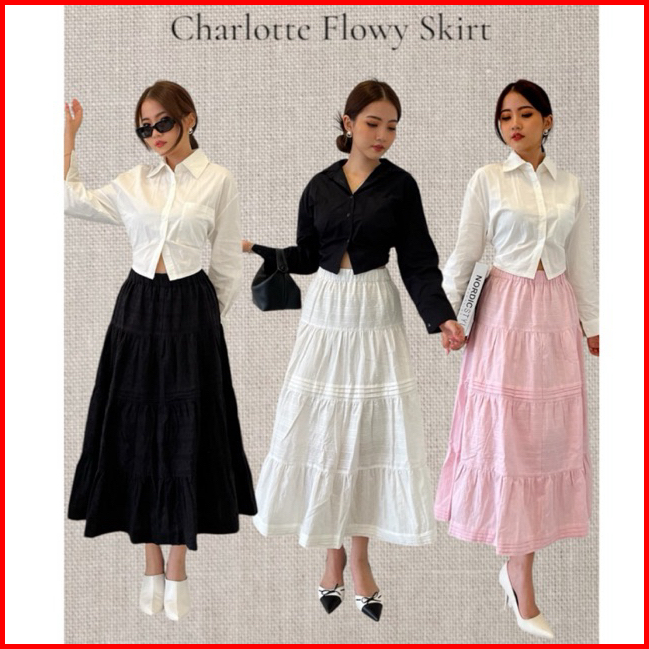 Charlotte Flowy Maxi Skirt Katun Multilayer