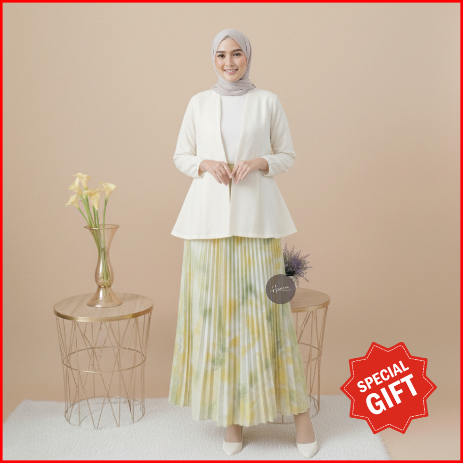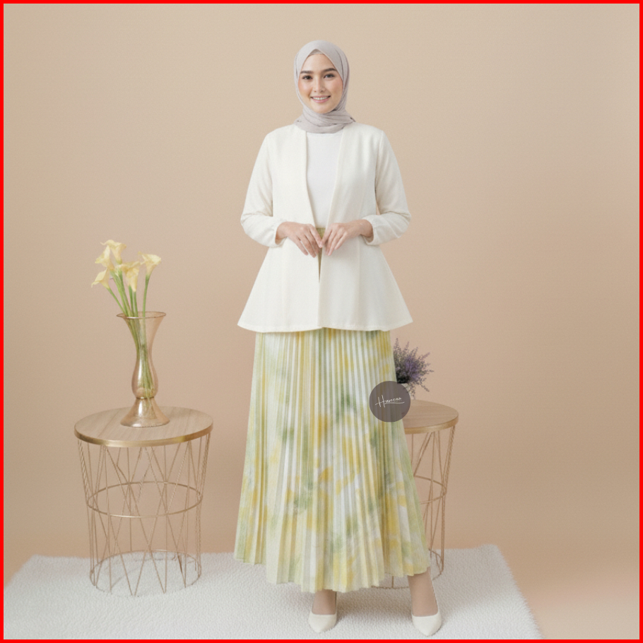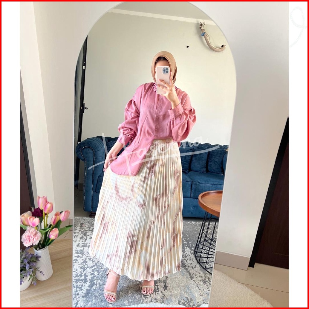 Haseena Rok Plisket Ceisya Motif Marble Bawahan Wanita Anti Nerawang