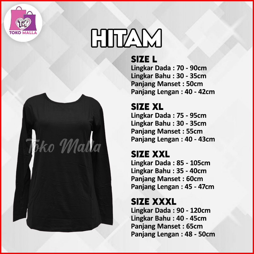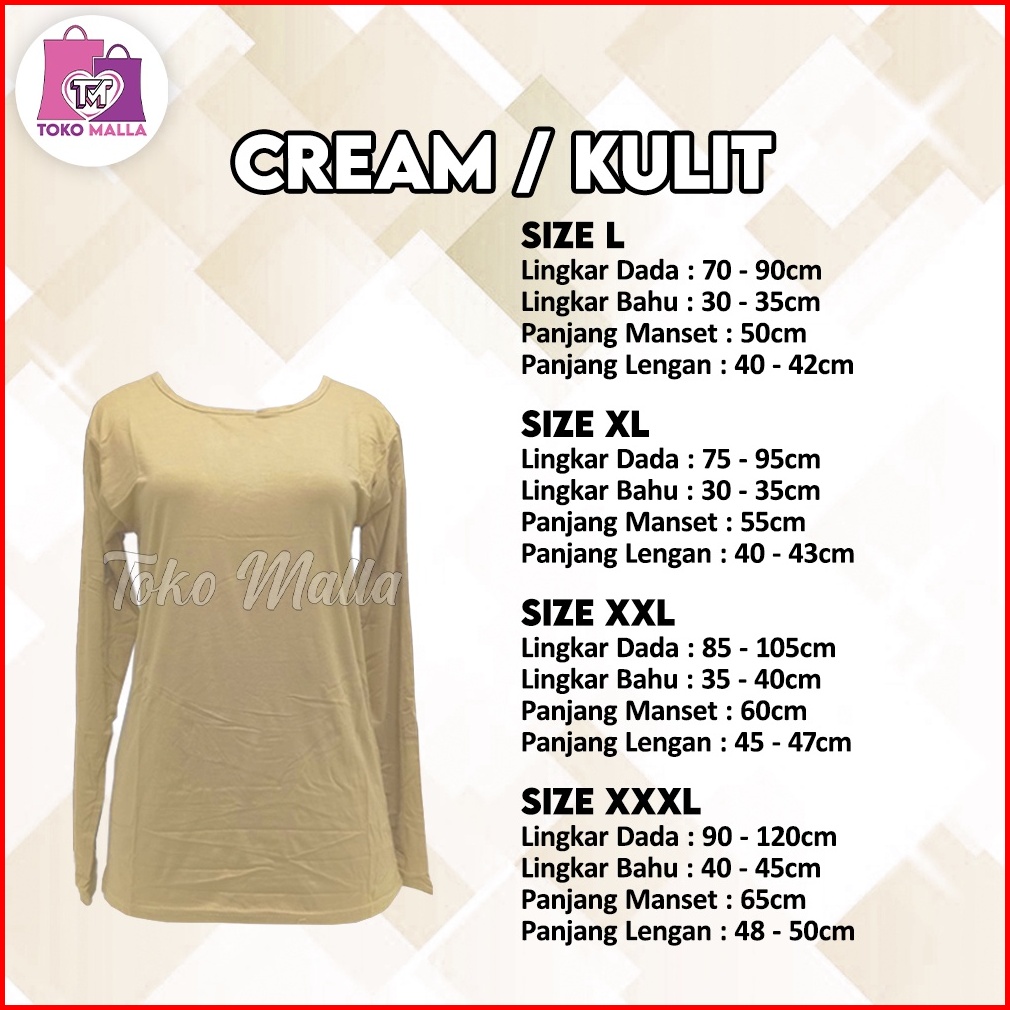 Manset Lengan Panjang Wanita Baju Atasan Muslimah Inner Bahan Rayon Super Leher Polos Dalaman Perempuan Warna Item Kulit