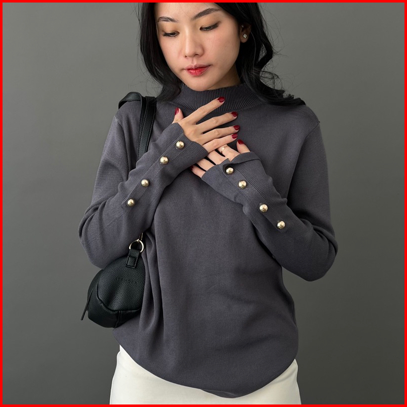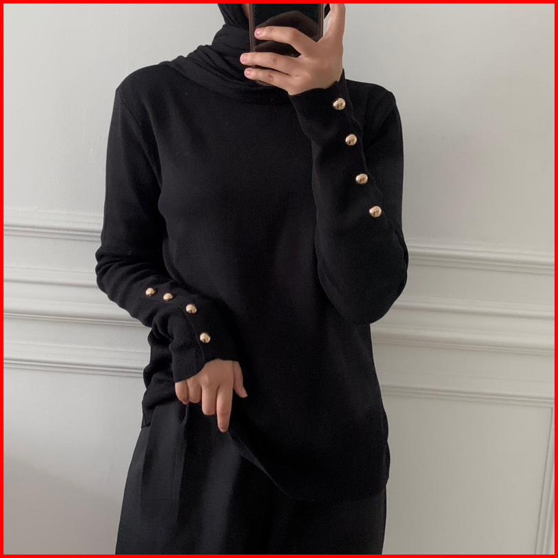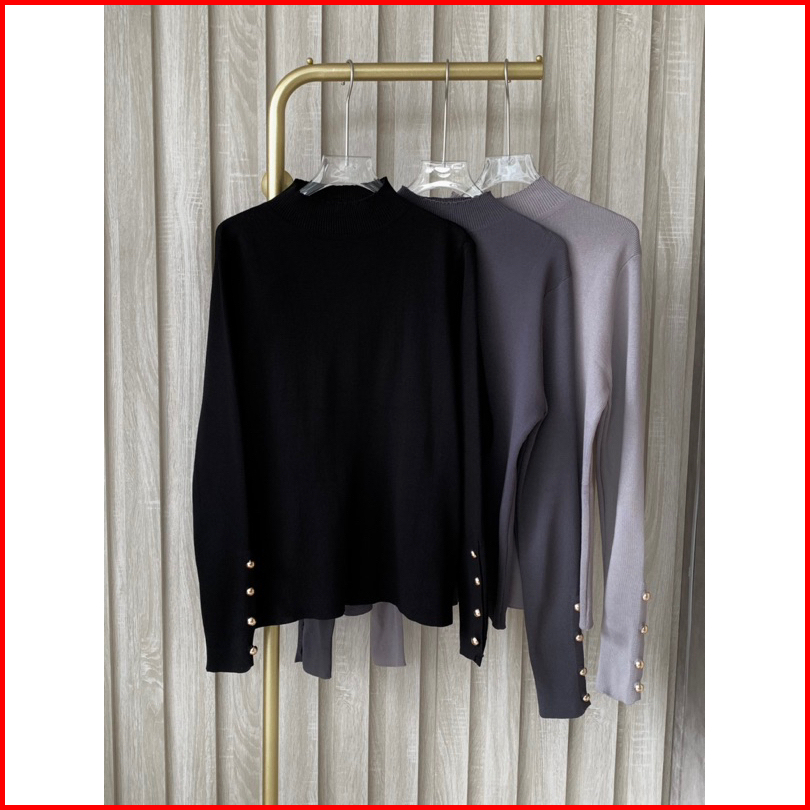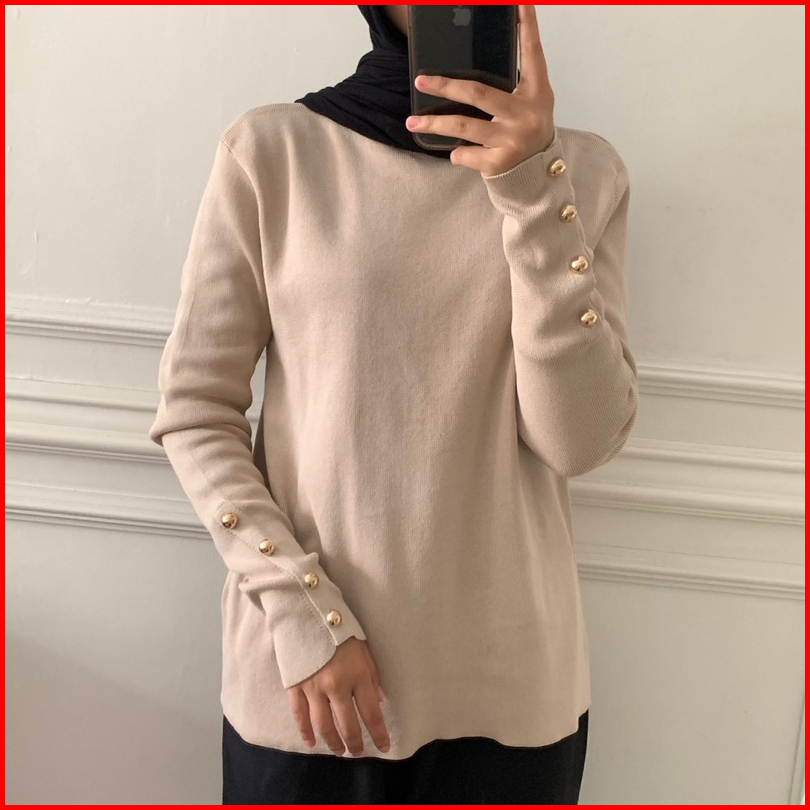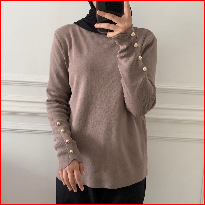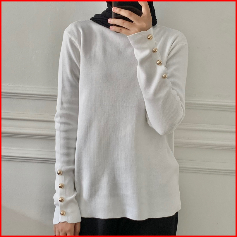 Butikchlaris - Sasha Top Knitt Button Baju Inner Manset Sweater Rajut Atasan Rib Wanita Import