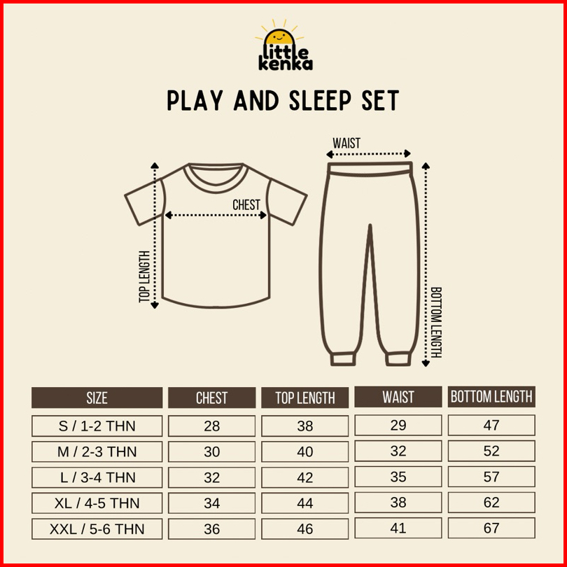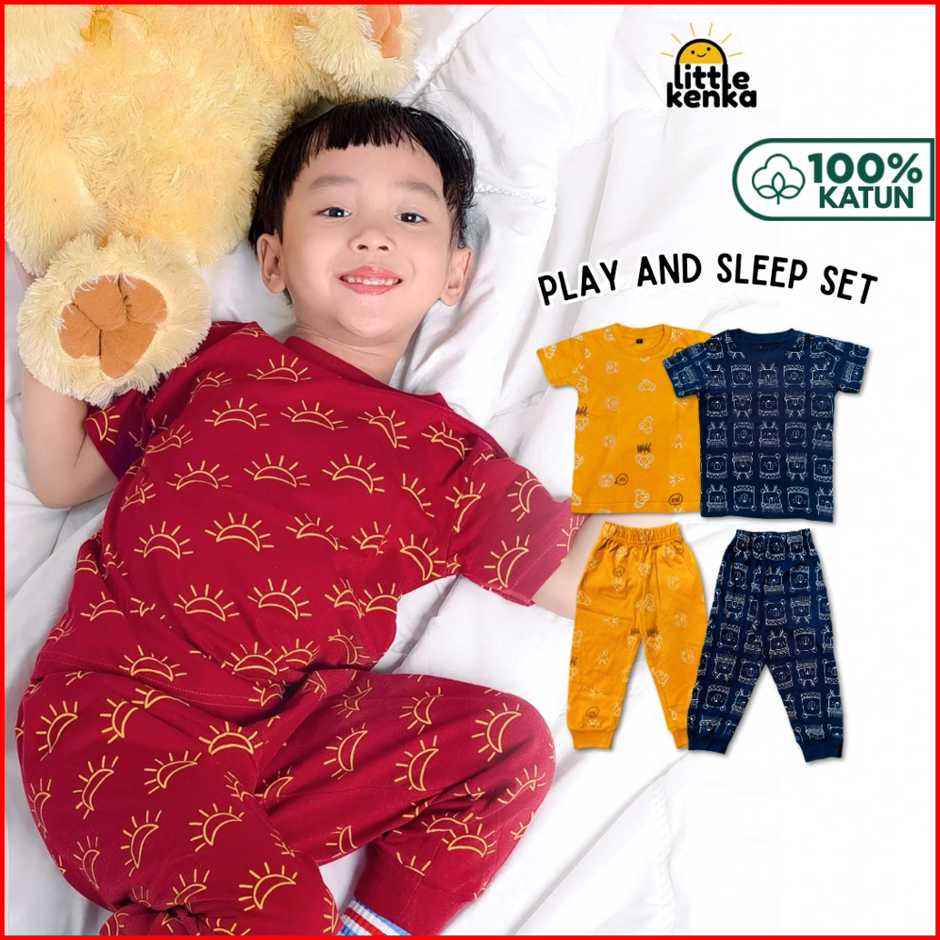 Little Kenka - Play And Sleep Set - Setelan Baju Tidur Piyama Anak Baju Kaos Lengan Pendek Celana Panjang Unisex Laki-la